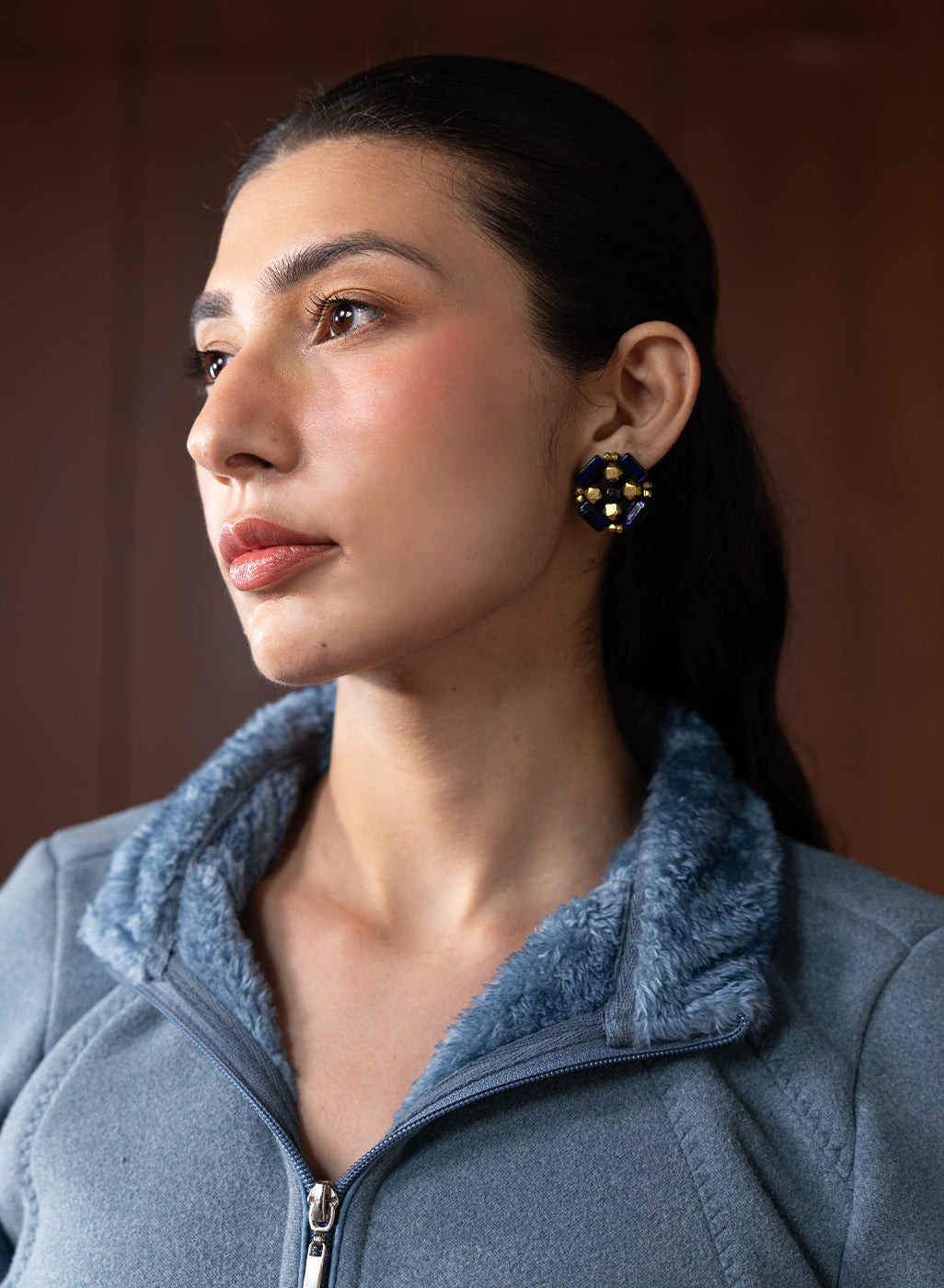 A winter essential designed for comfort and versatility. Crafted from ultra-soft fabric, this high-neck jacket features panelled construction with fine triangle stitch detailing for a sleek, structured fit. The cozy inner fur lining keeps you comfortably warm through the season, while the front zipper ensures effortless wear.