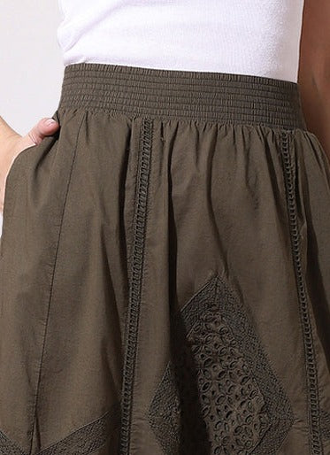Look stylish and sassy, come what may with this olive skirt from the house of Lakshita. Our skirts are crafted from pure cotton fabric that lends impeccable comfort while the color palette offers a range of choices. Accented with elasticated waistbands our plain skirts can make a great combo with crop tops, ethnic kurtas, and other upper wear.