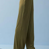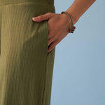 Olive Green Elastic Straight Fit Flared Palazzo - Lakshita