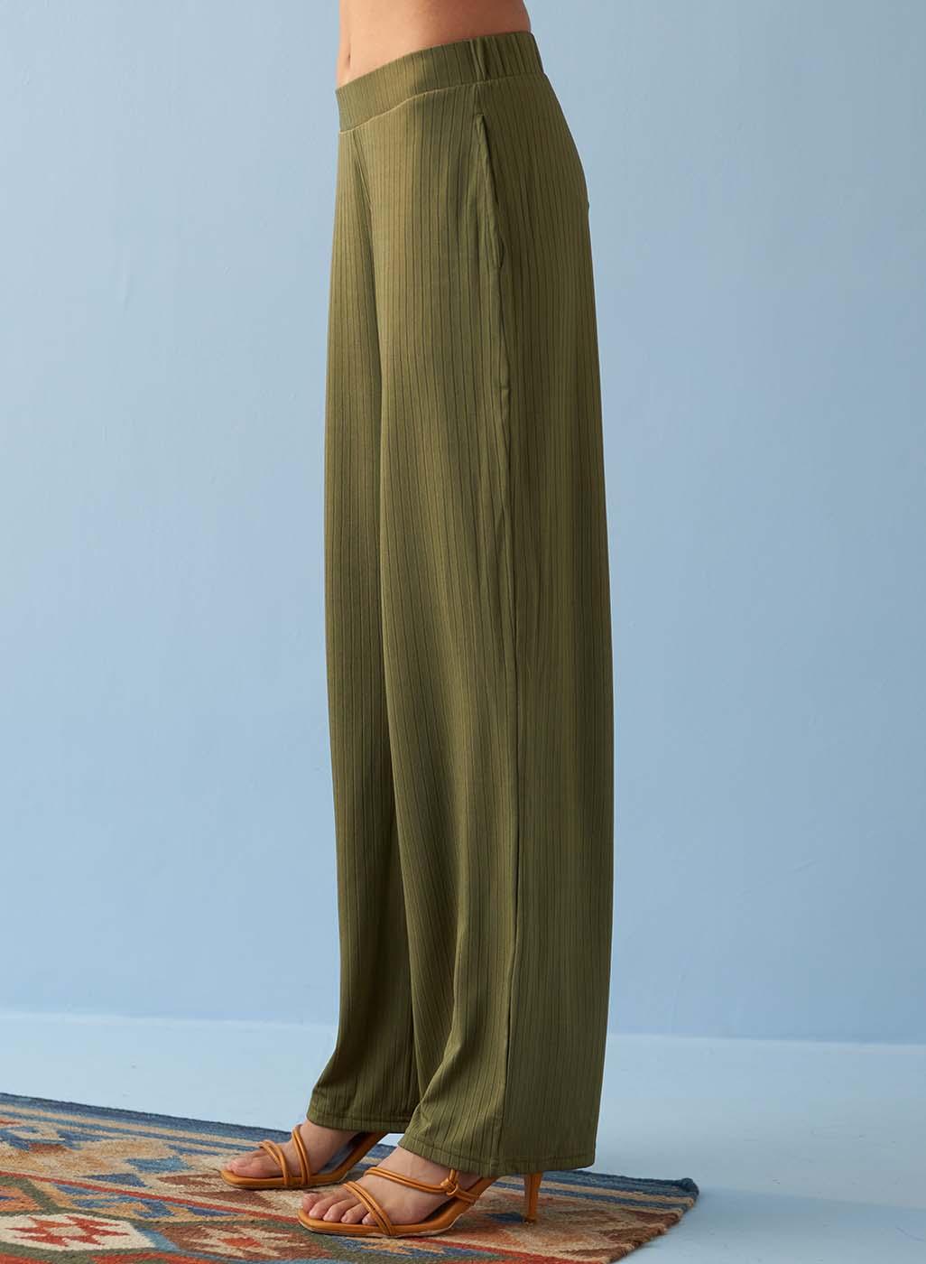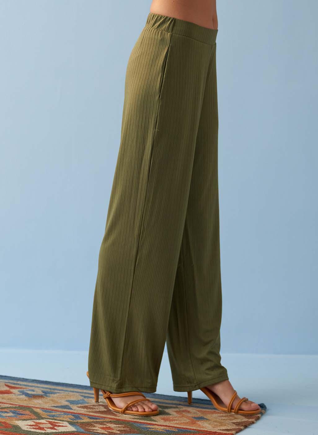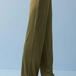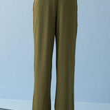 Olive Green Elastic Straight Fit Flared Palazzo