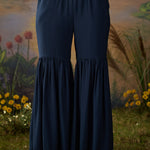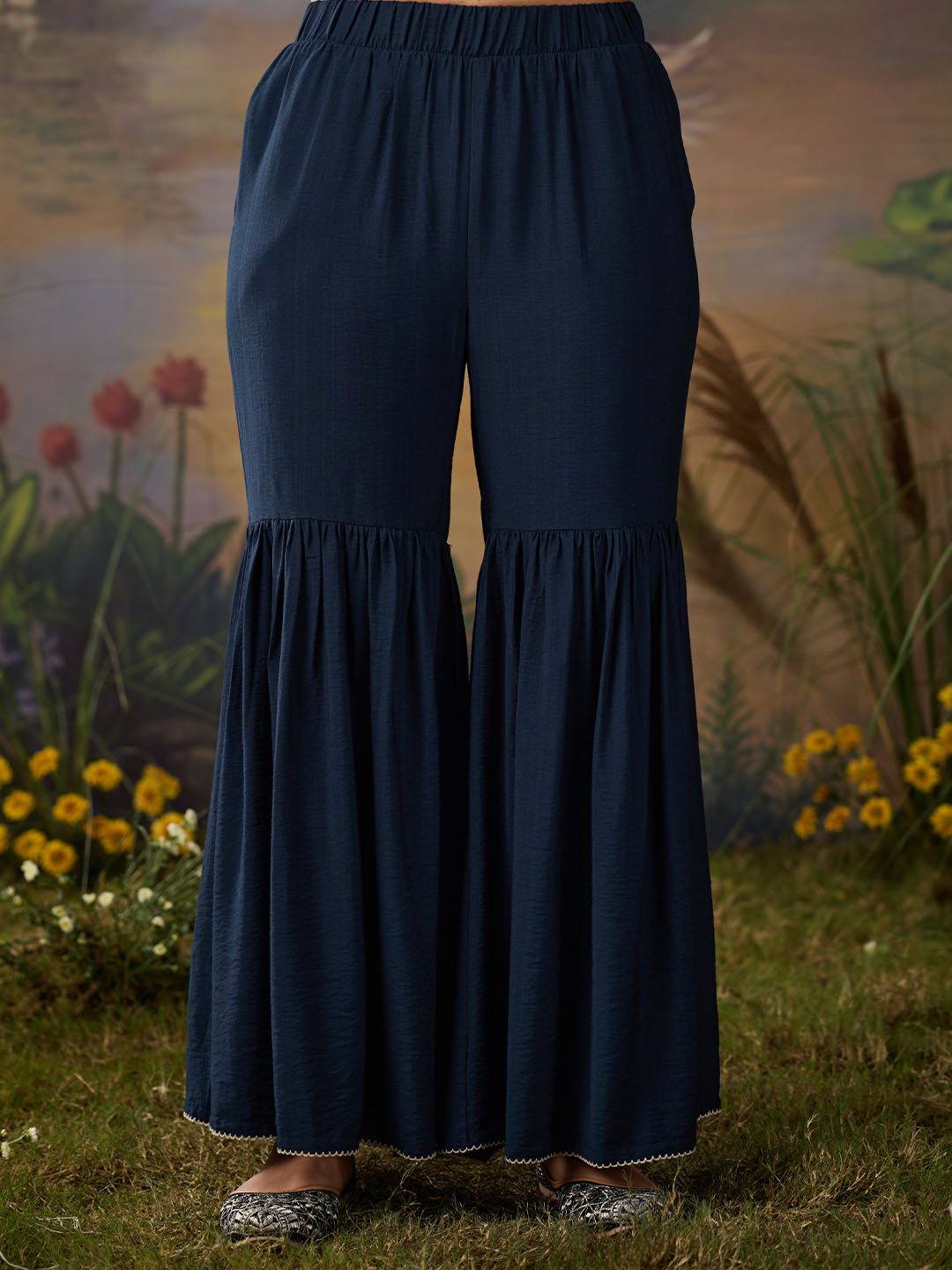 • Solid navy garara with mid-rise elastic waistband and pockets for comfort