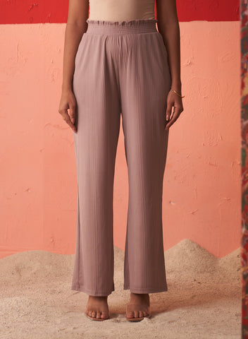 Pink Straight Fit Palazzo with Smocking Waist Band