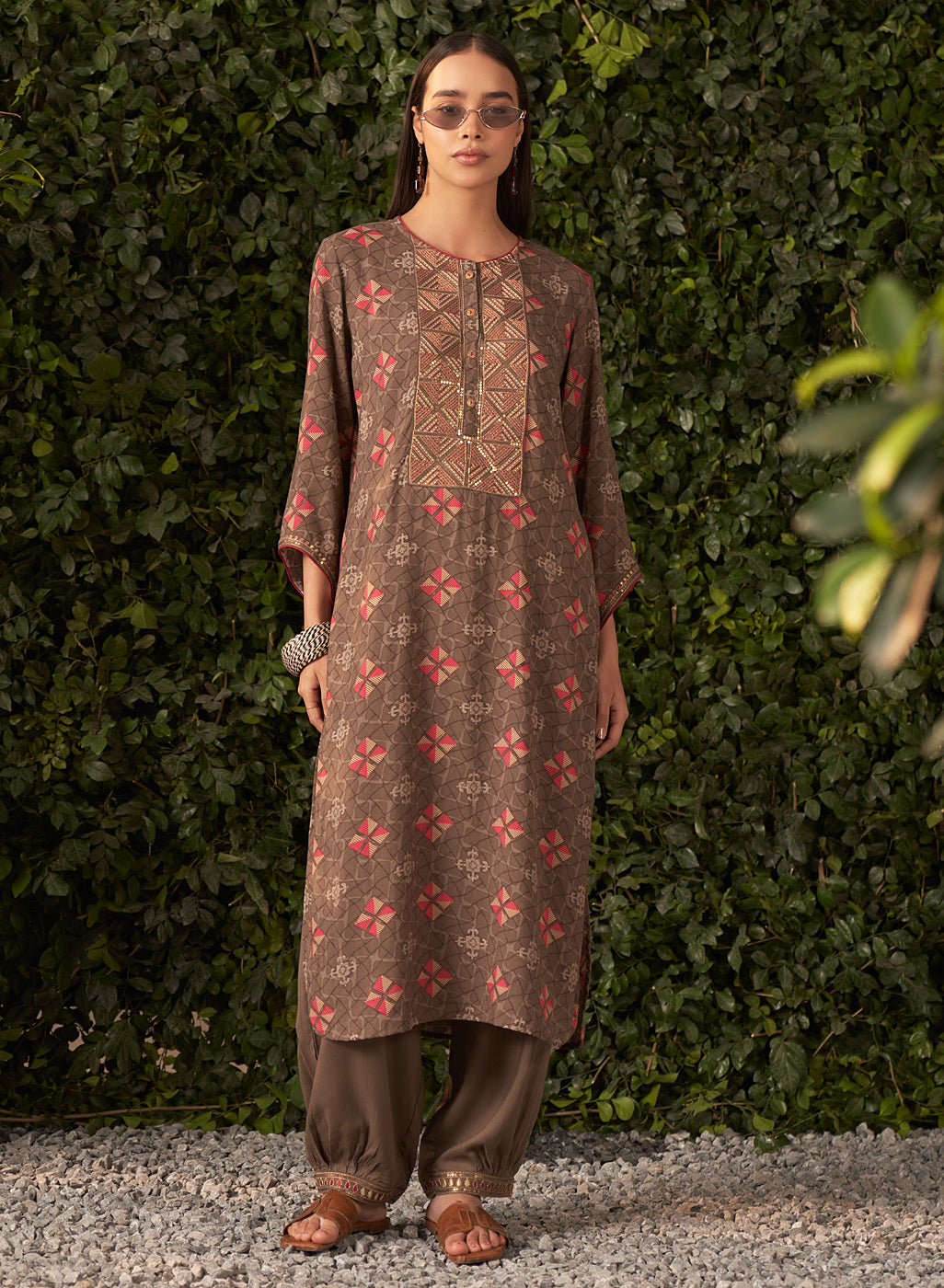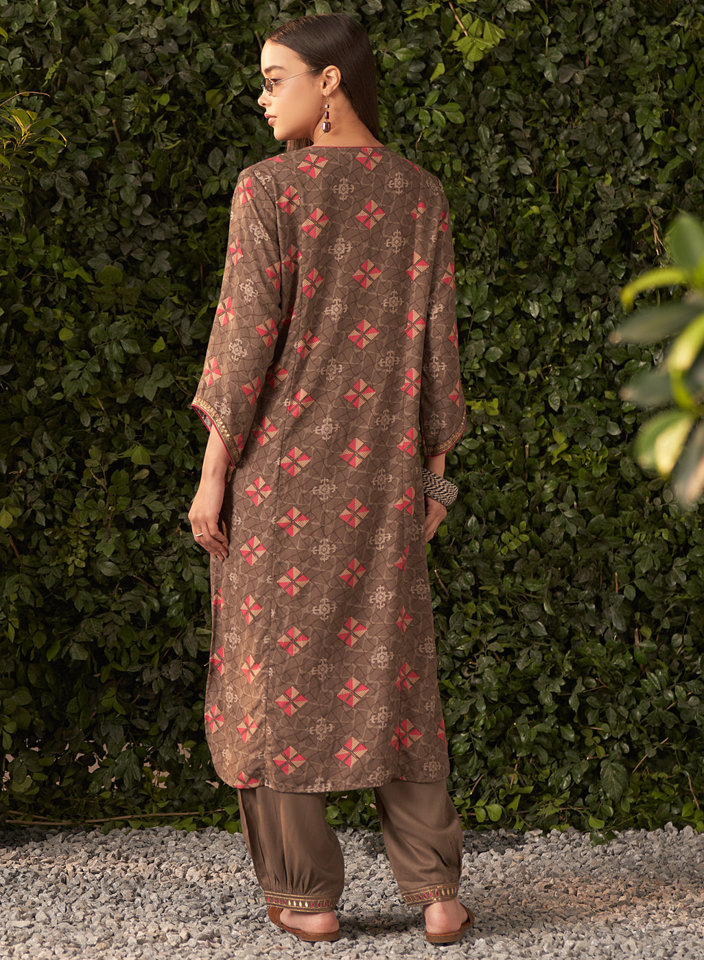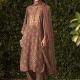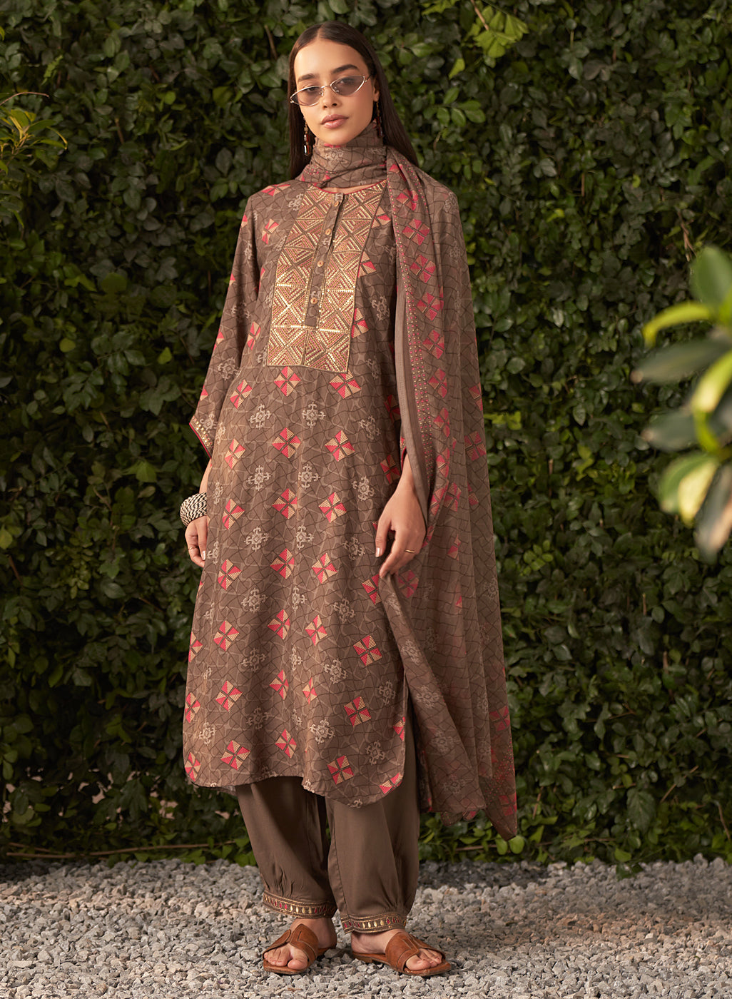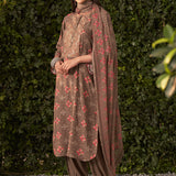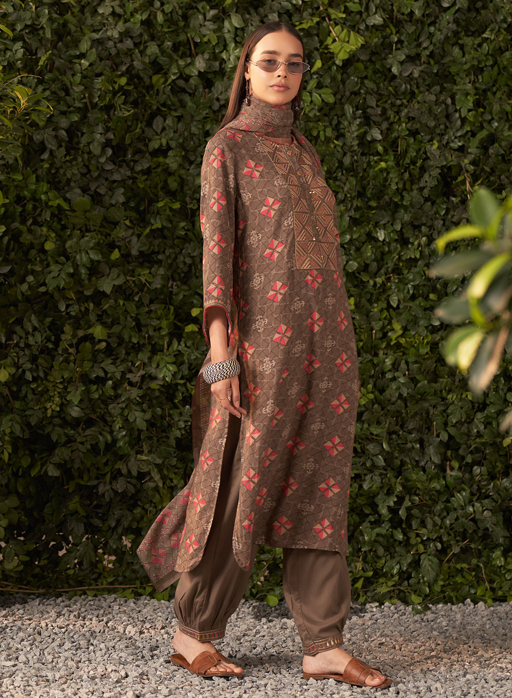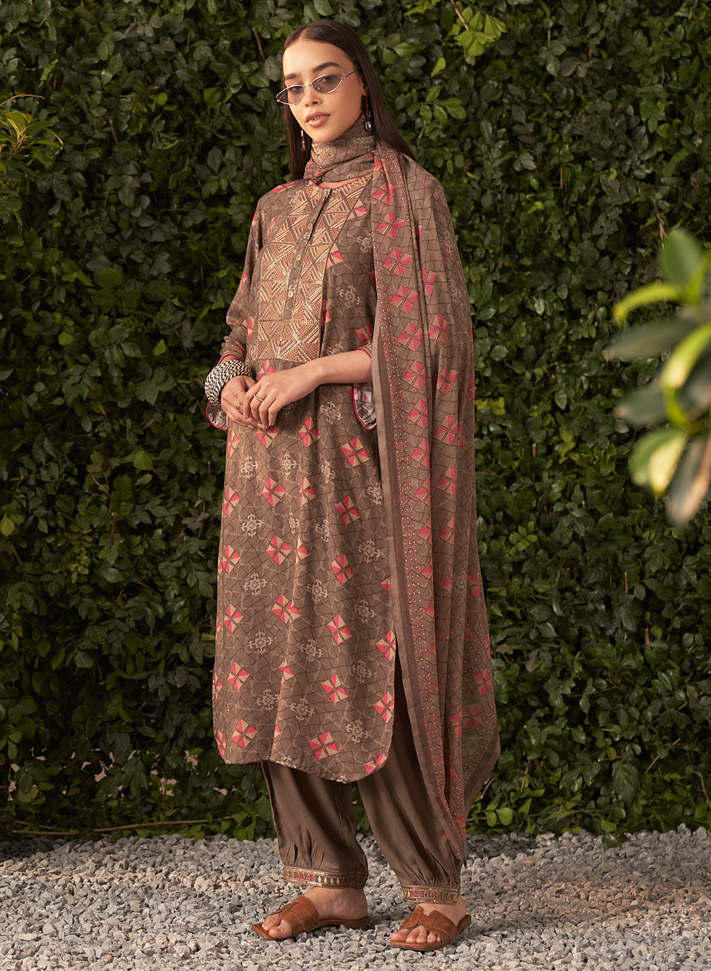 Prisha Brown Printed Rayon Suit Set with Dupatta