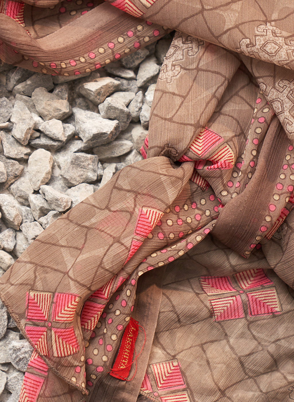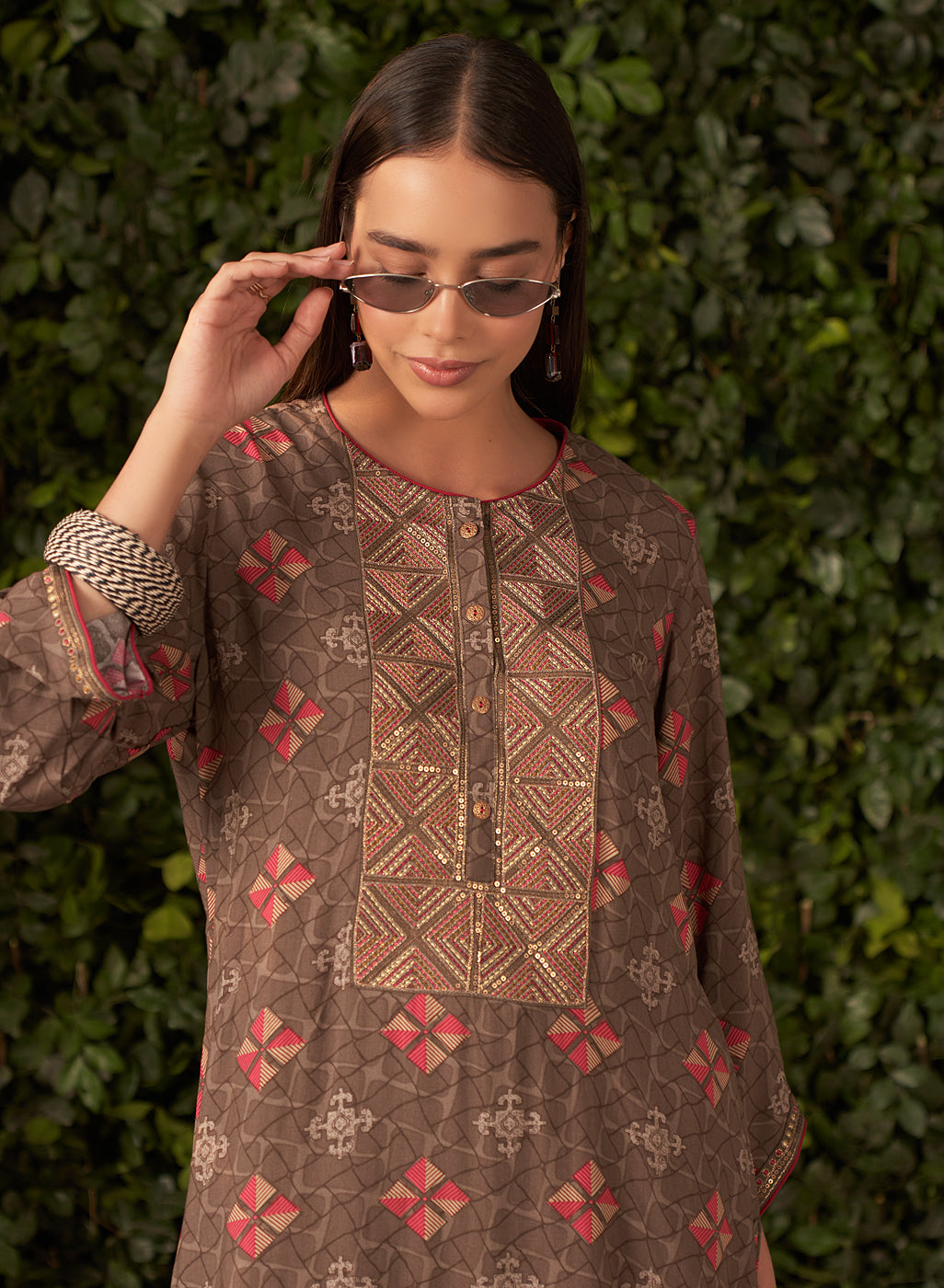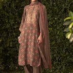 •Completing the ensemble, the chiffon dupatta showcases a mesmerizing all-over print, enhancing the outfit’s layered elegance.