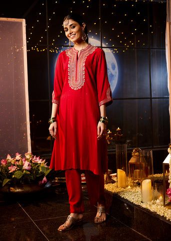Introducing our Raima embroidered suit set for women, designed to make you shine during festive occasions with a perfect blend of elegance and comfort. Crafted from soft, breathable rayon, this suit set offers an unmatched luxurious feel, making it ideal for long celebrations.
