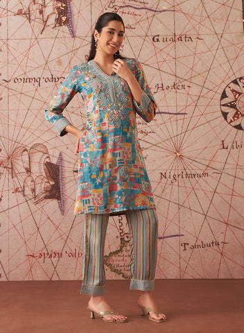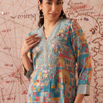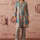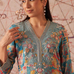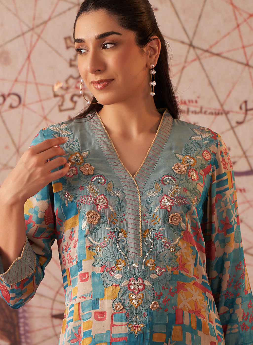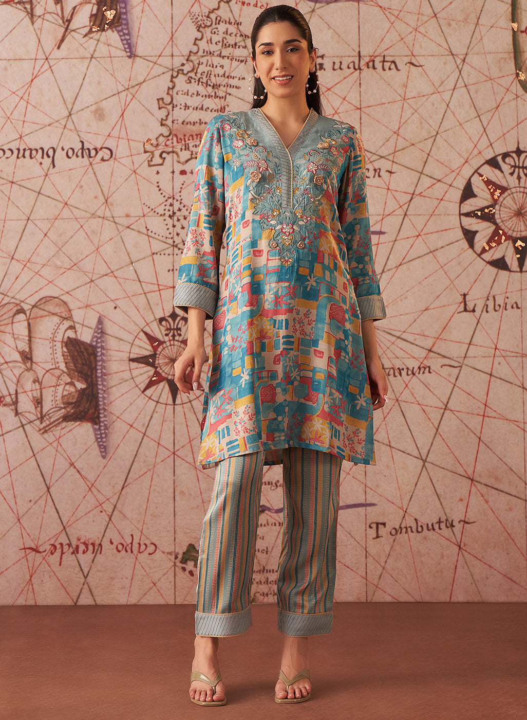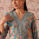 Raima Smokey Blue Printed Satin Co-ord Set for Women