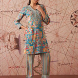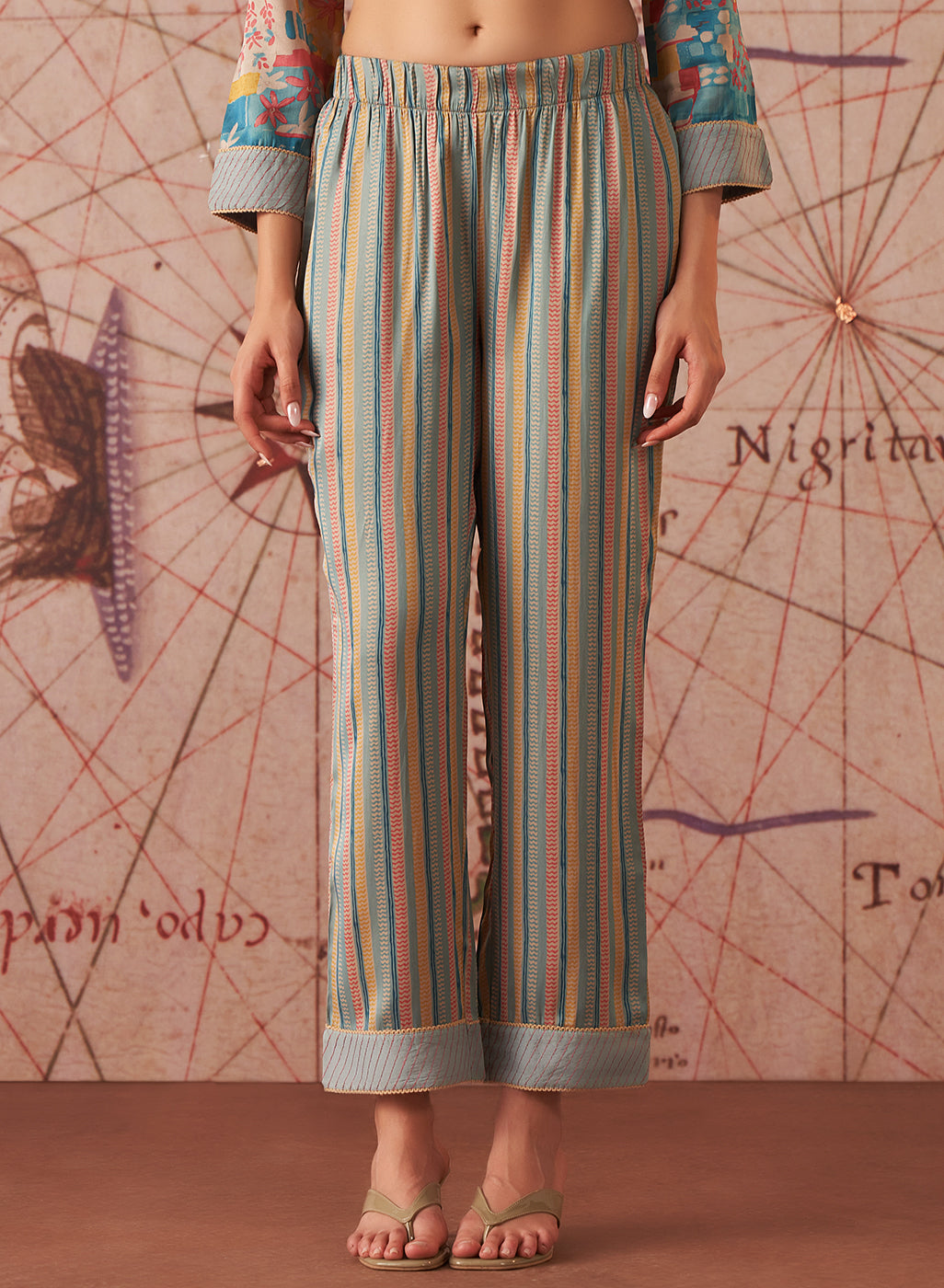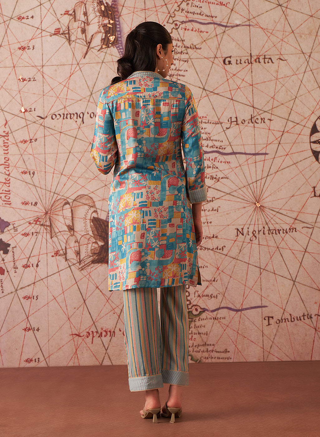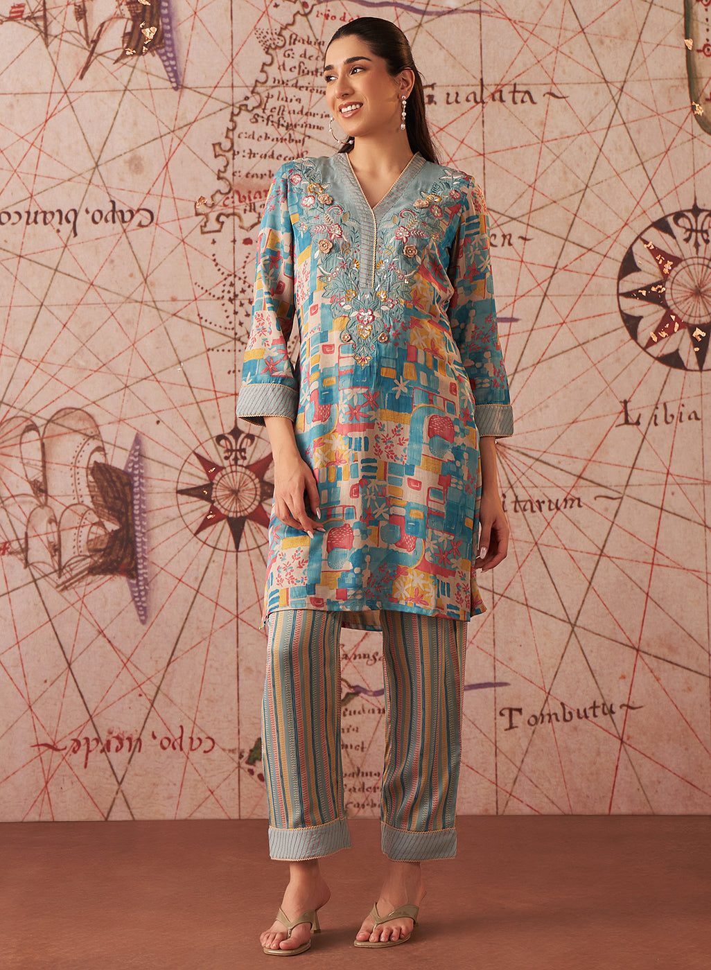 Raima Smokey Blue Printed Satin Co-ord Set for Women