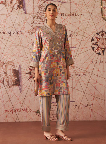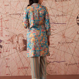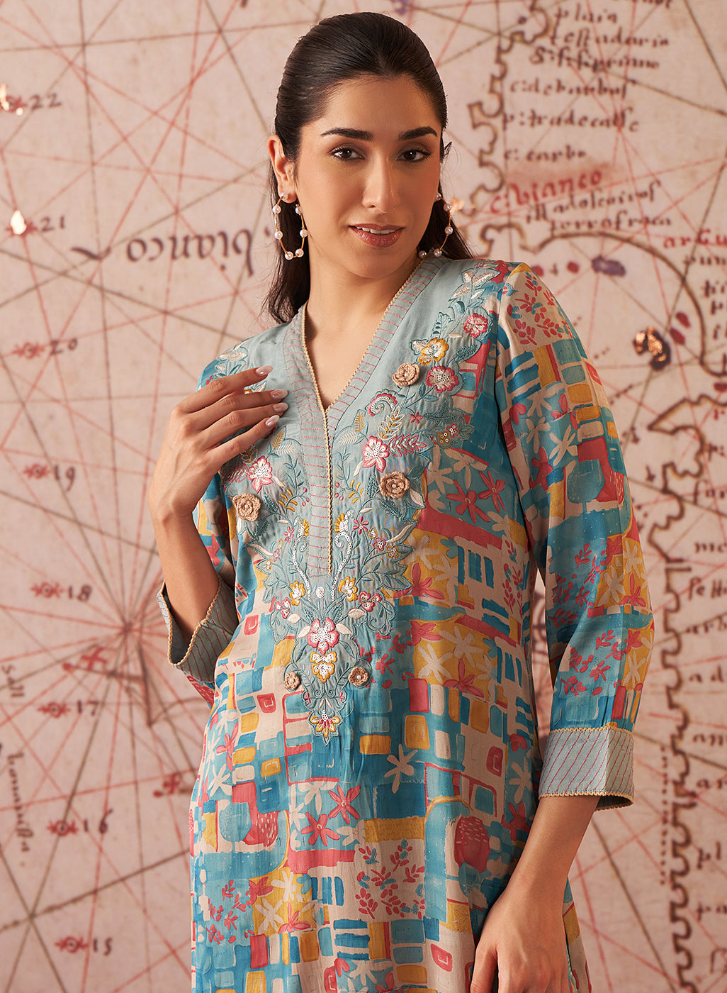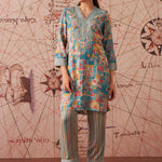 •The breathtaking all over print is coupled with a fabric patch on the neck showcasing resham embroidery and sequin highlights.