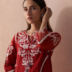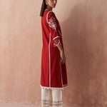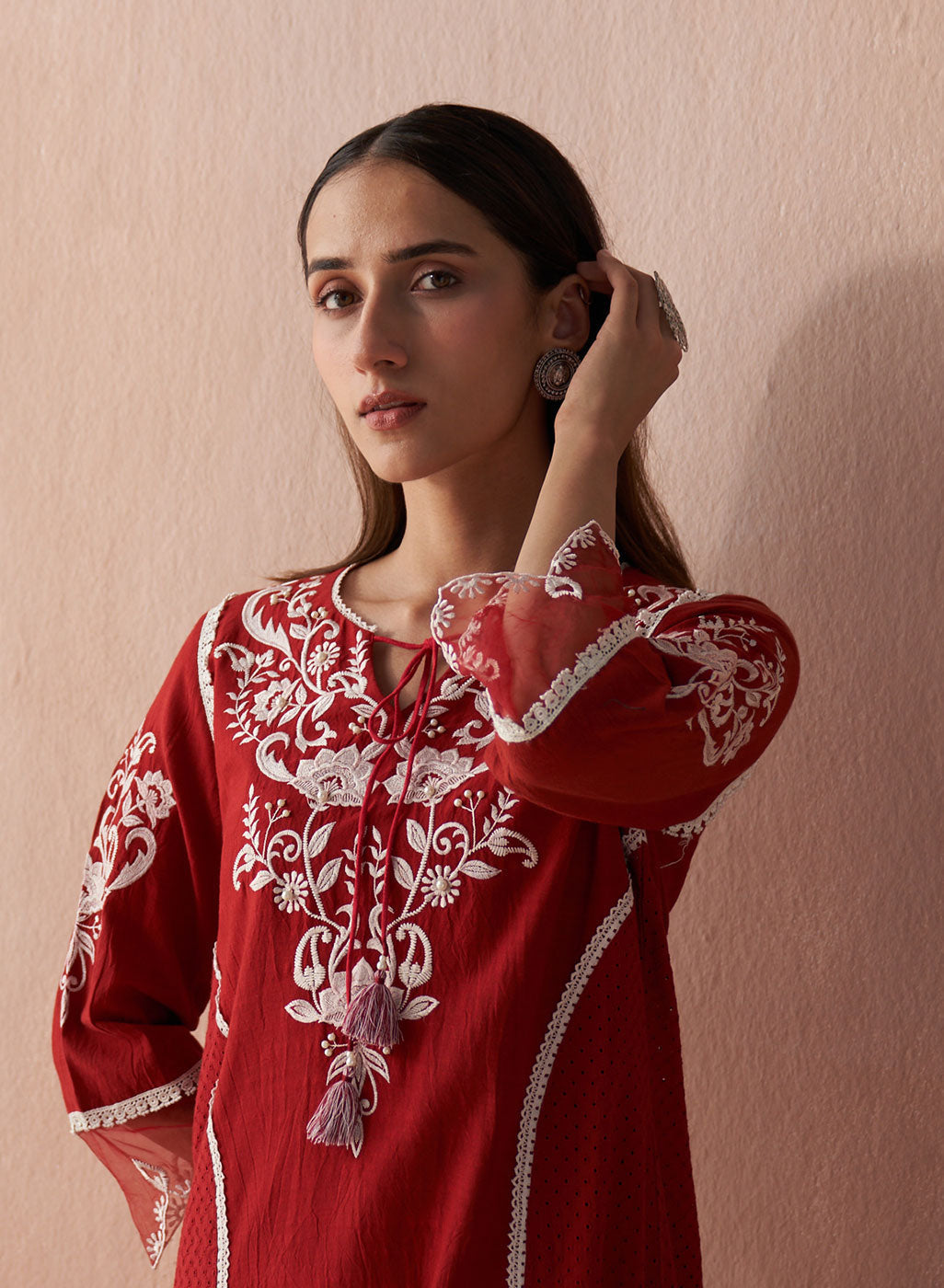 Red Alora Collection Kurta With Embroidery And Lace Detailing
