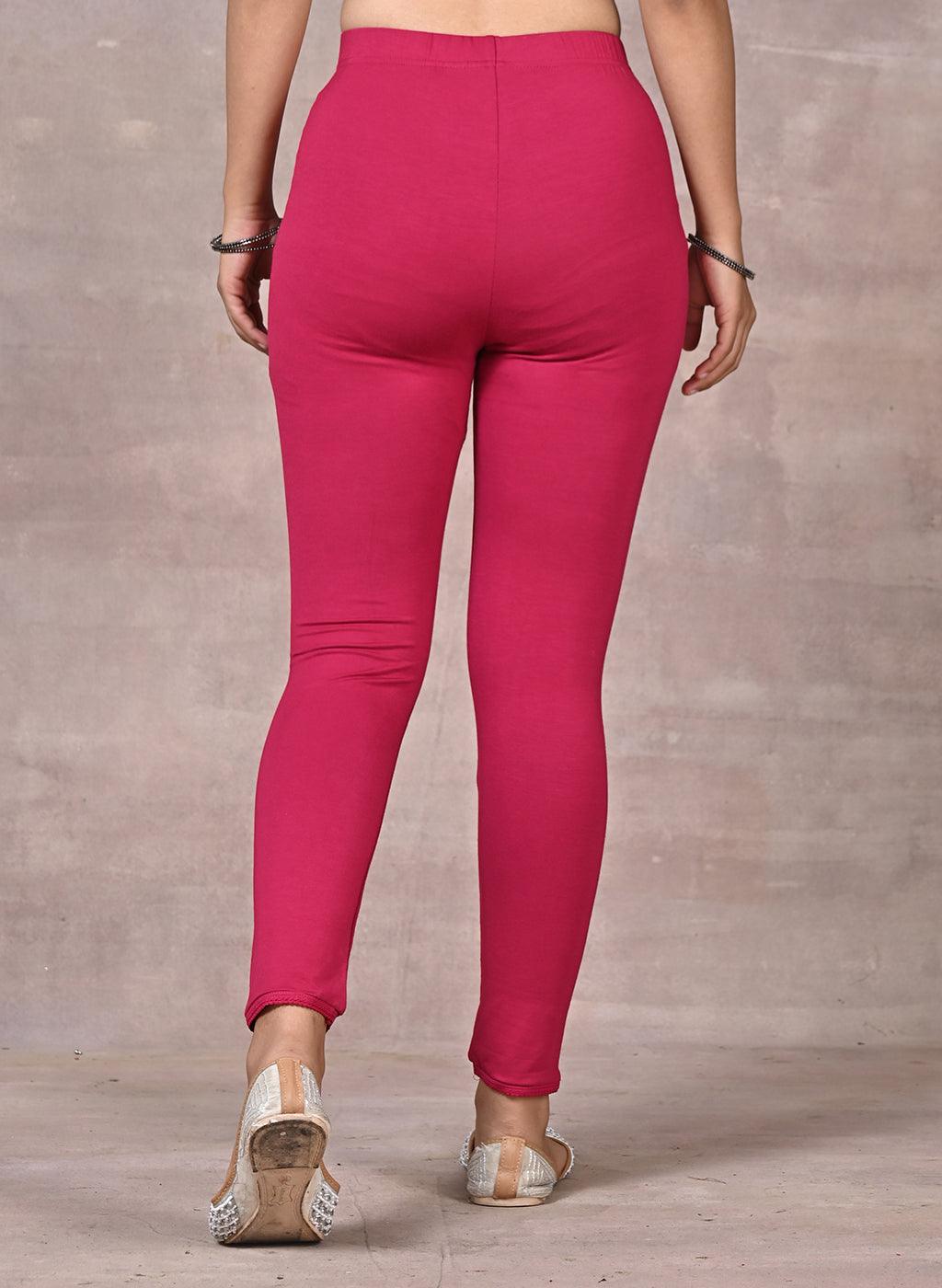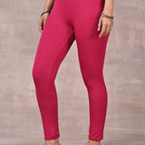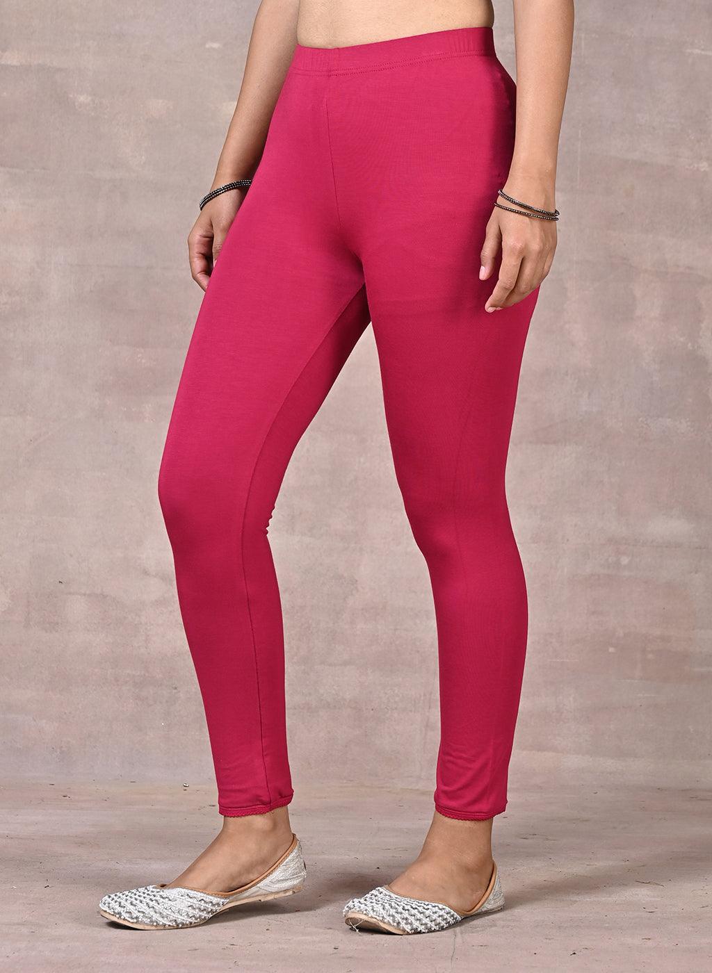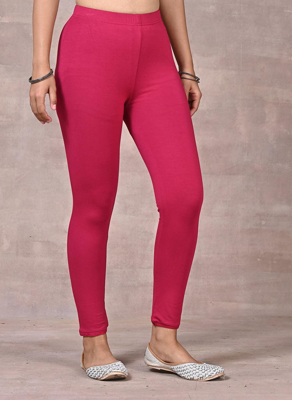 Rose Pink Ankle Length Plain Legging - Lakshita