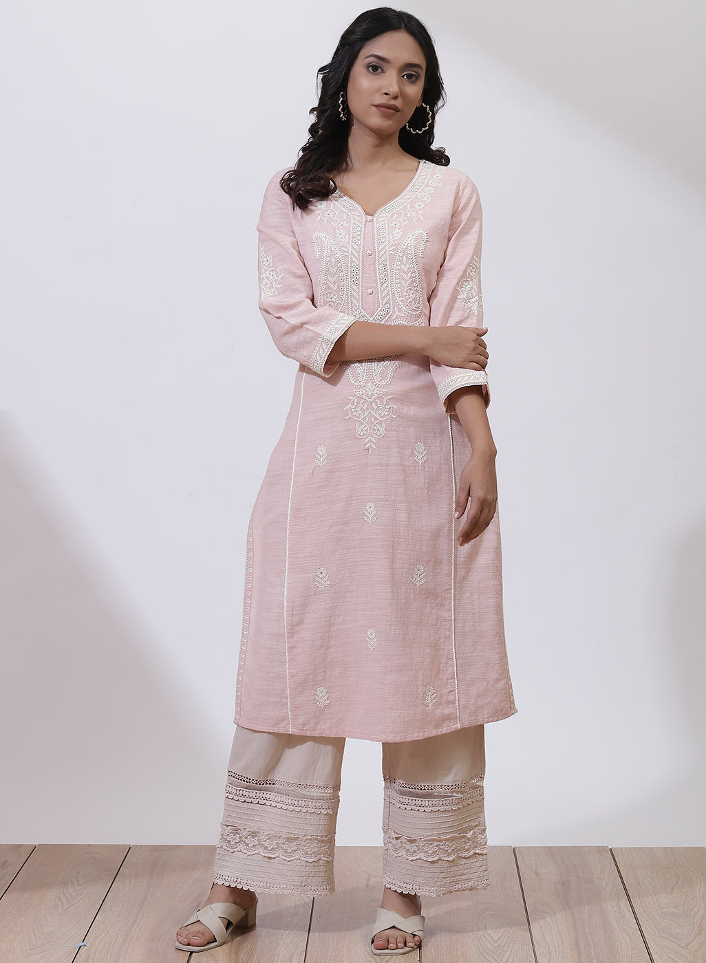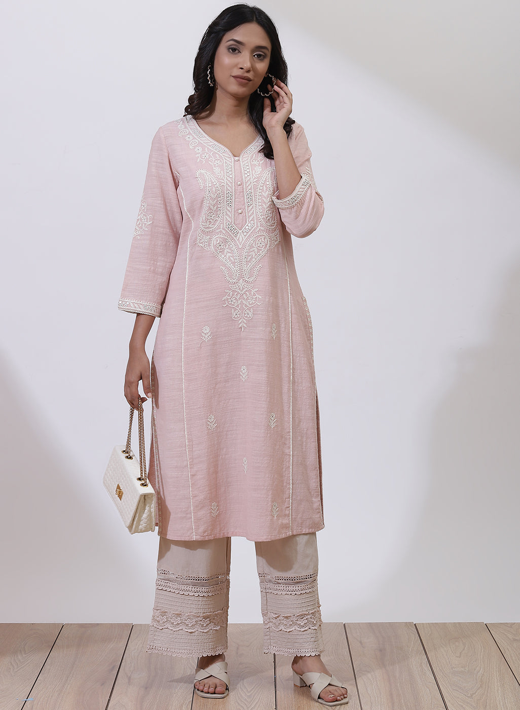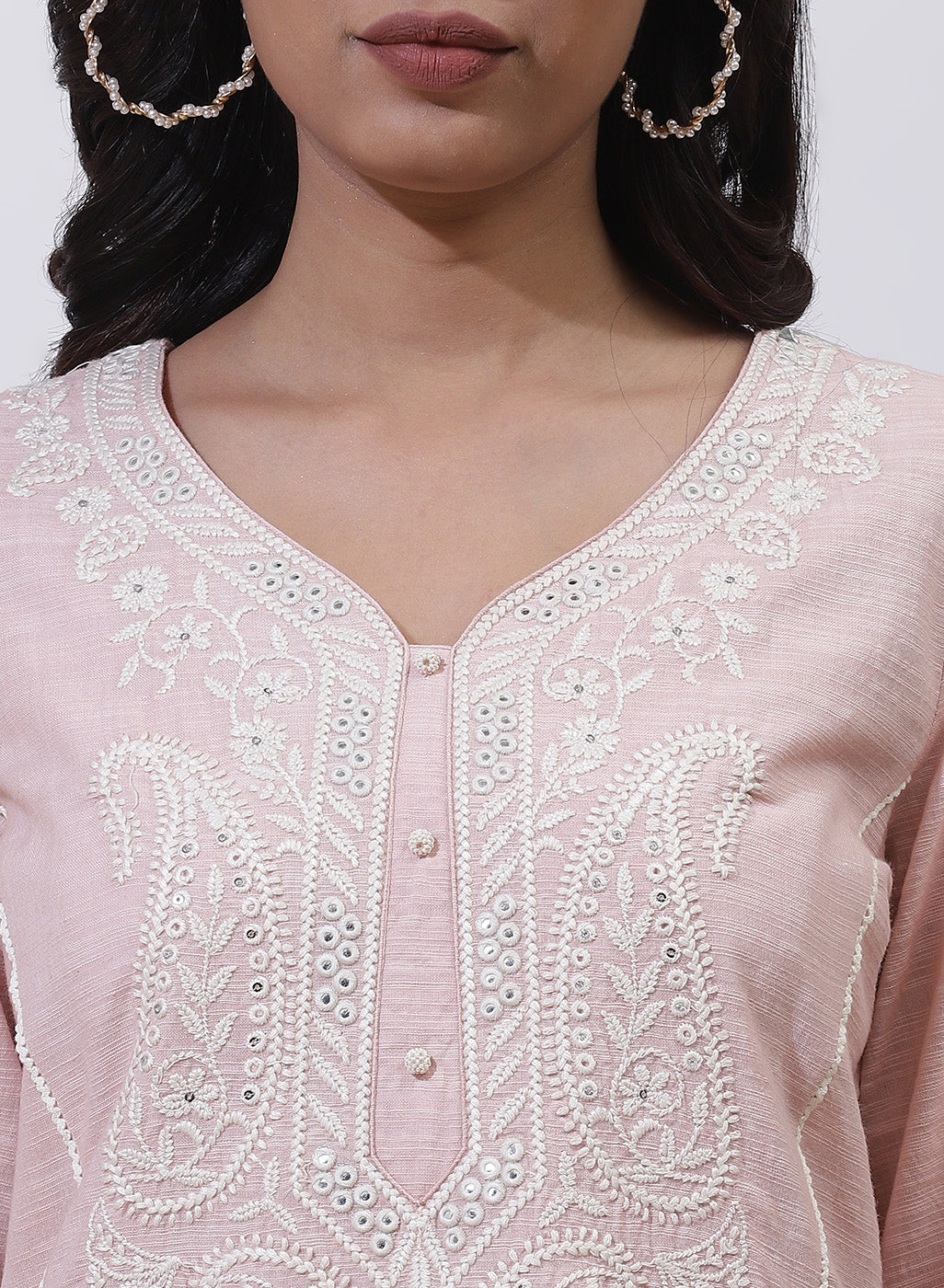 Rose Pink Phool Collection Kurta with Rice Stitch Embroidery