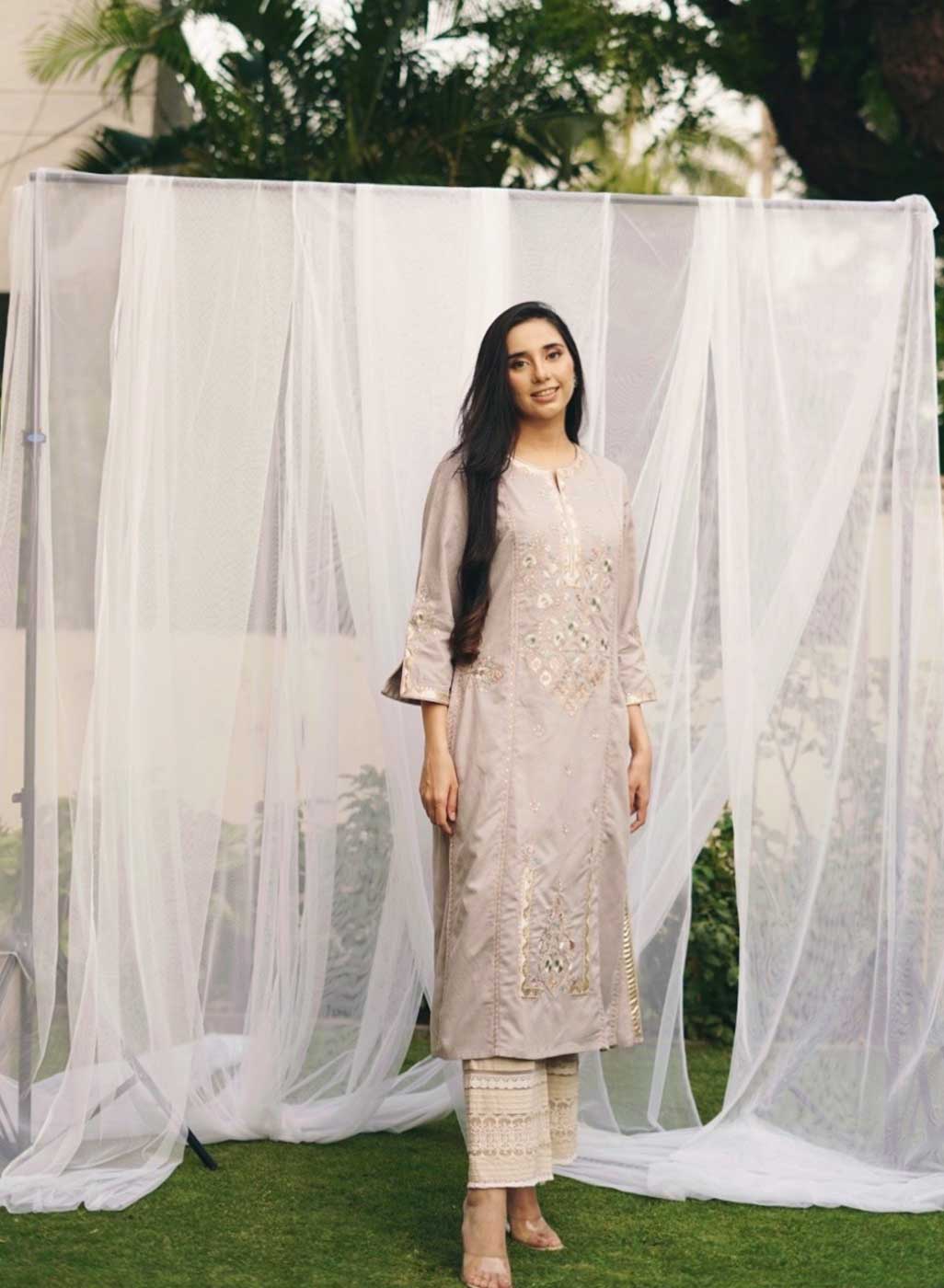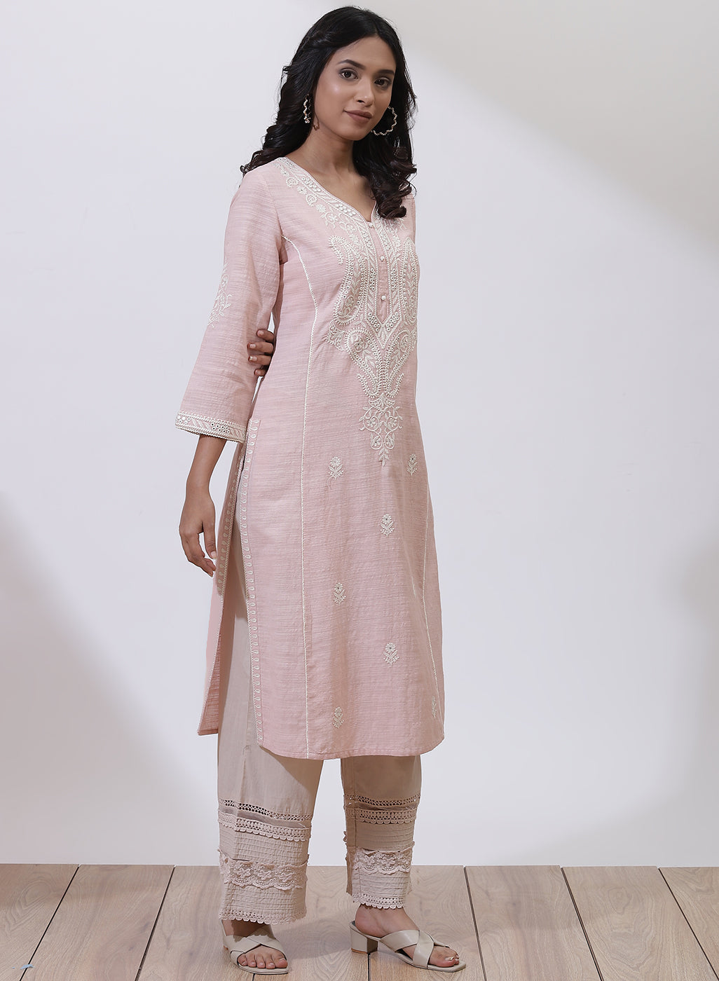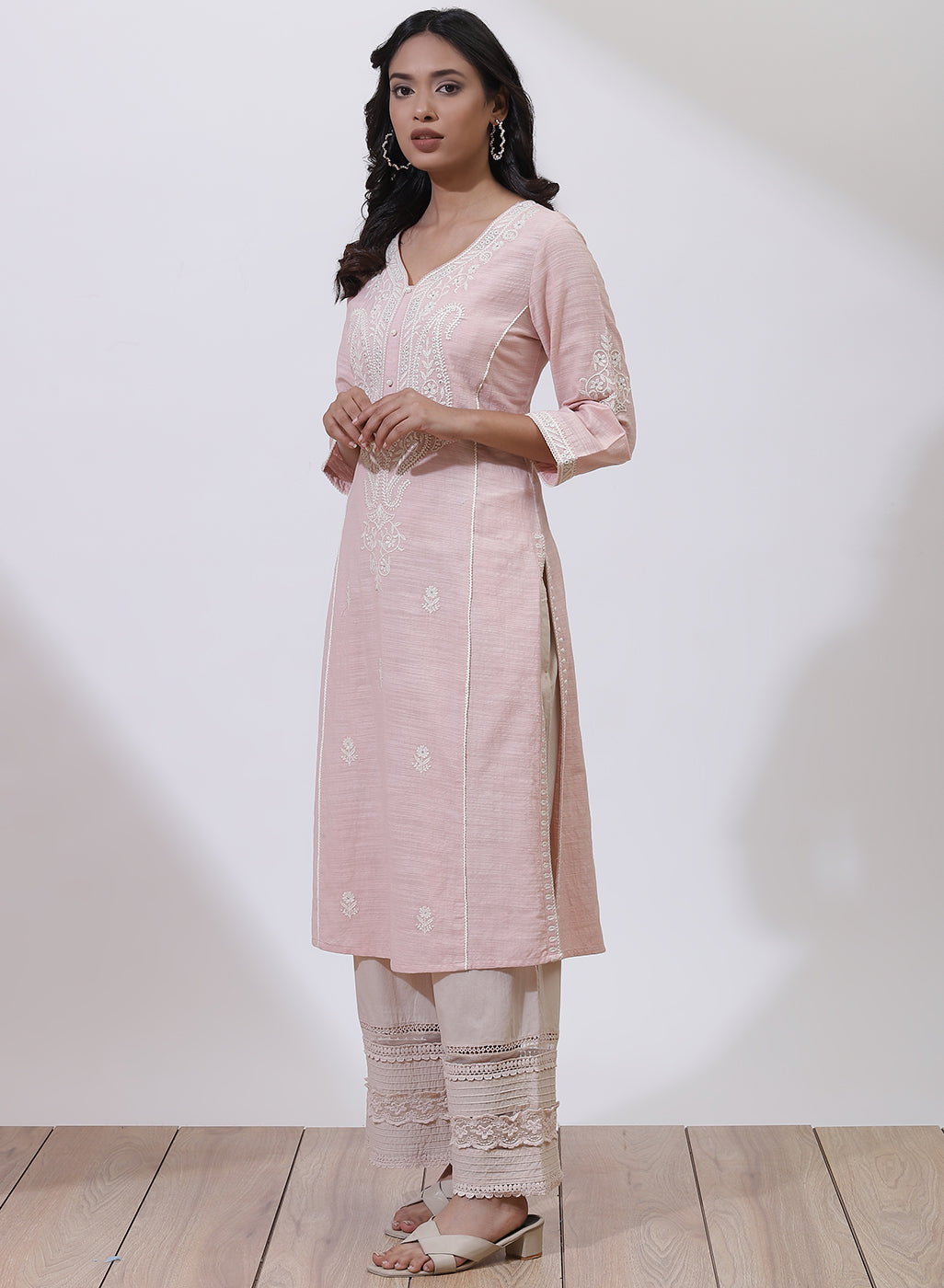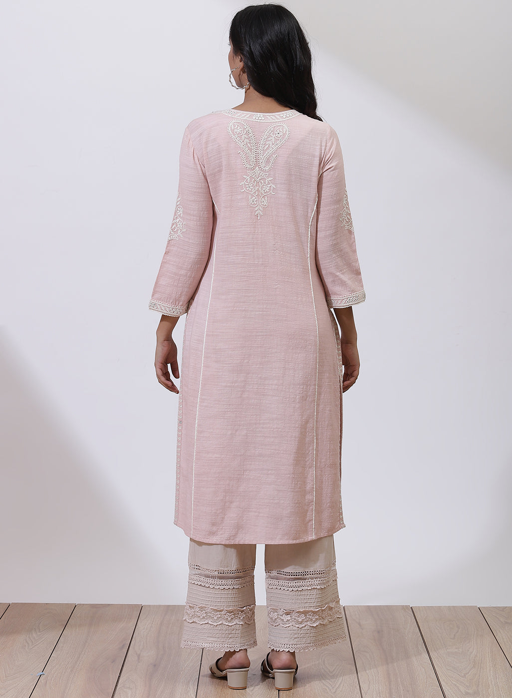Rose Pink Phool Collection Kurta with Rice Stitch Embroidery