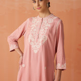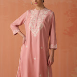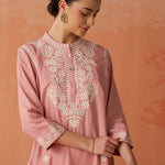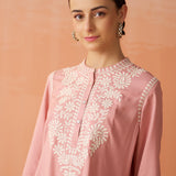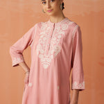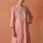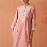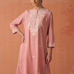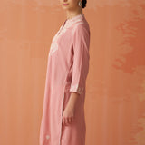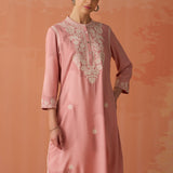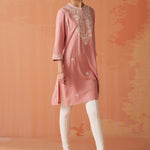 Saadgi Carnation Pink Embroidered Cotton Linen Tunic for Women