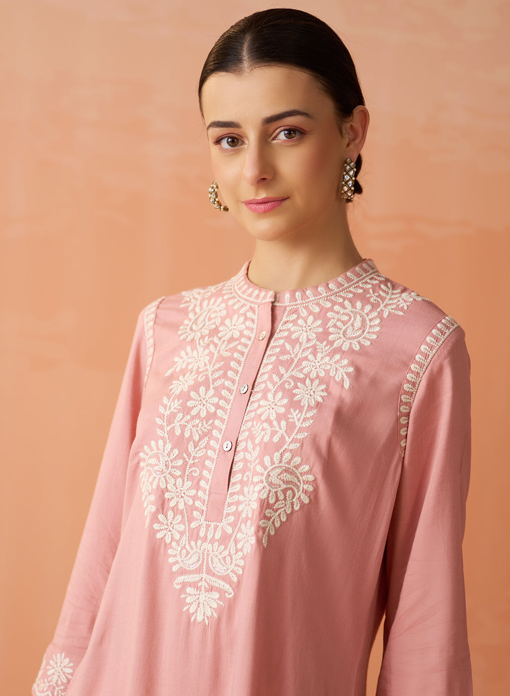 • Adorned with exquisite thread embroidery, this piece exudes timeless charms.
