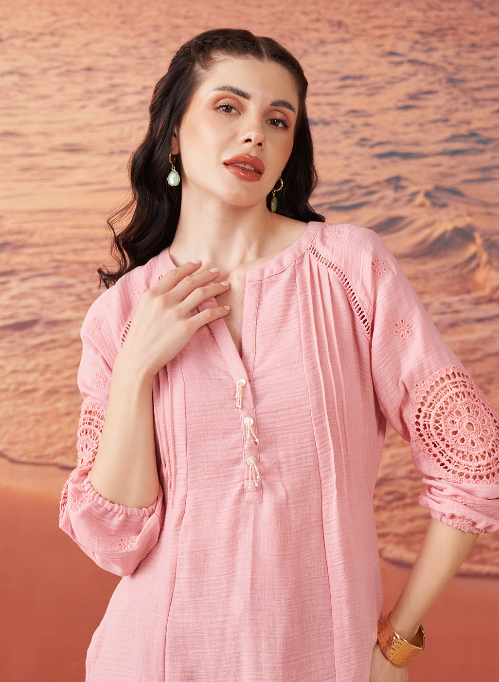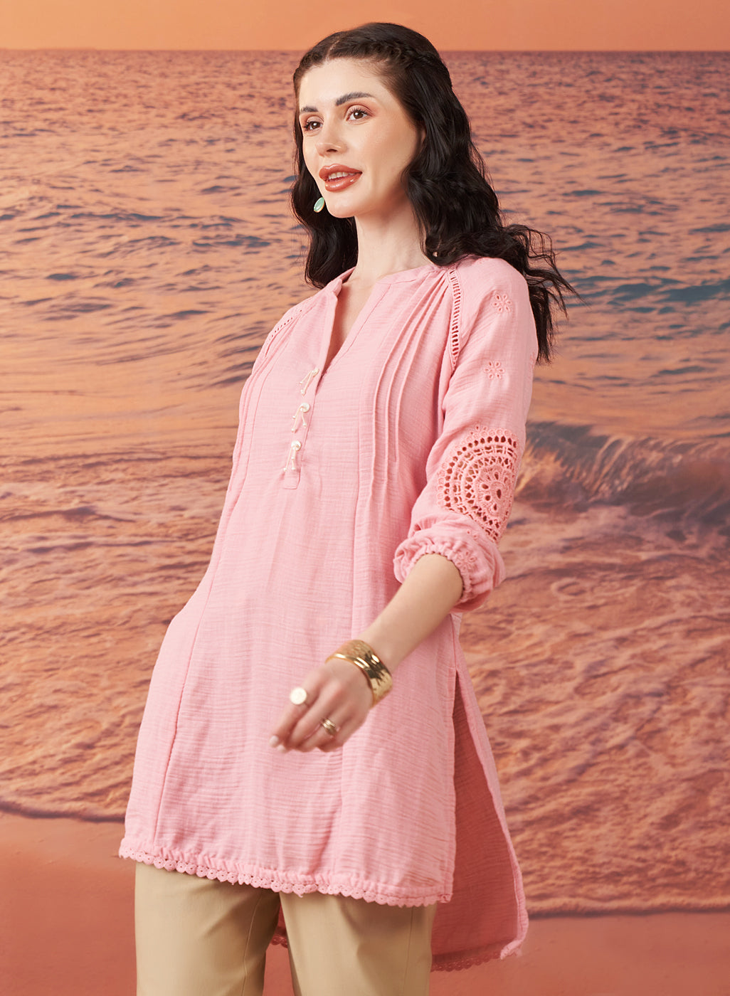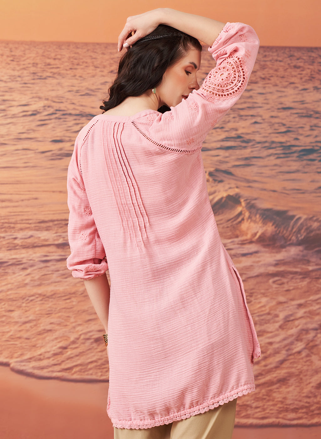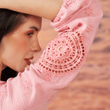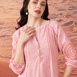Saadgi Pink Cotton Gauze Embroidered Kurti for Women