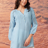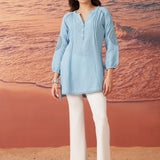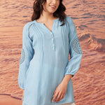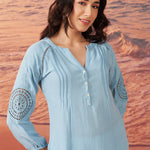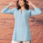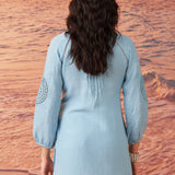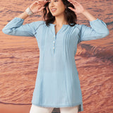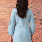 Saadgi Sky Blue Cotton Gauze Embroidered Kurti for Women