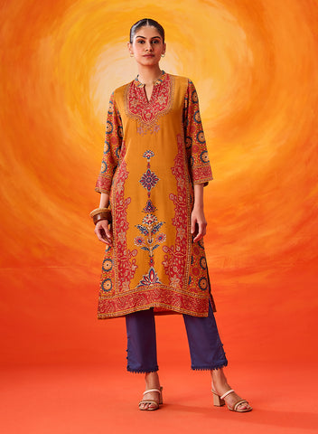Sahira Mustard Printed Shantoon Kurta