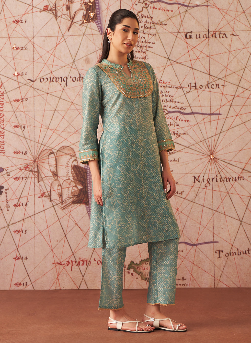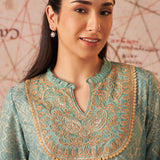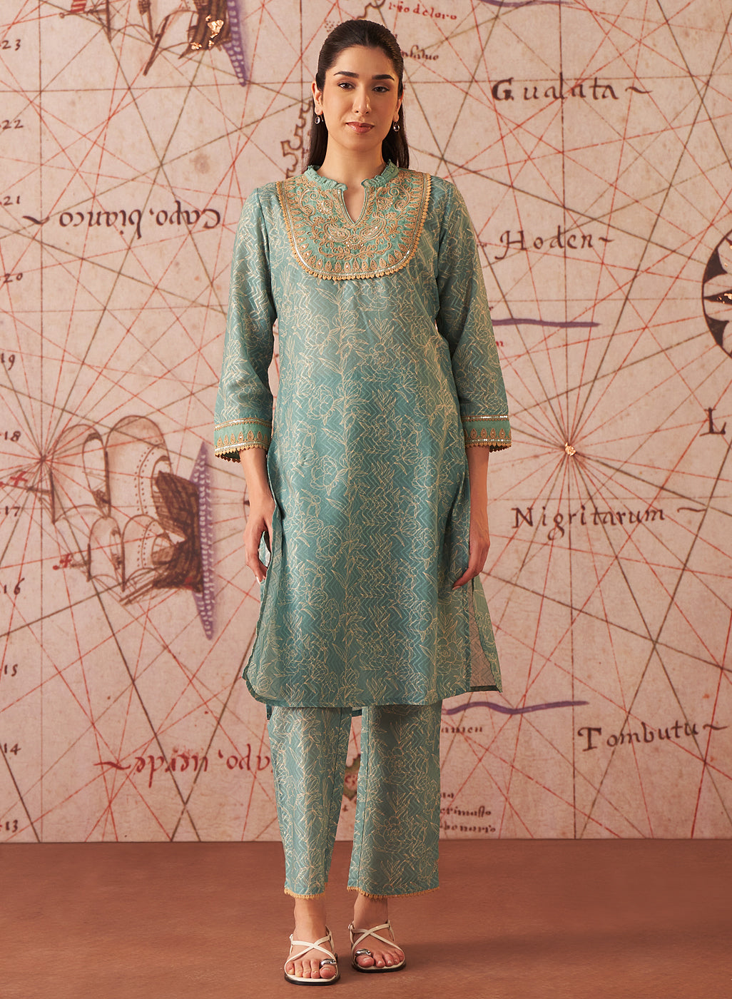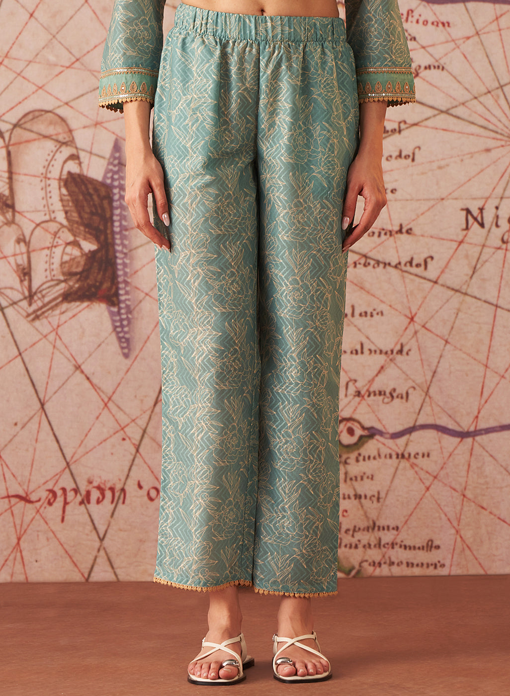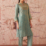 Sama Sea Green Printed Cotton Jacquard Co-ord Set for Women
