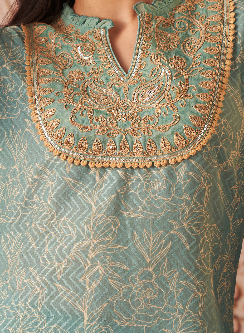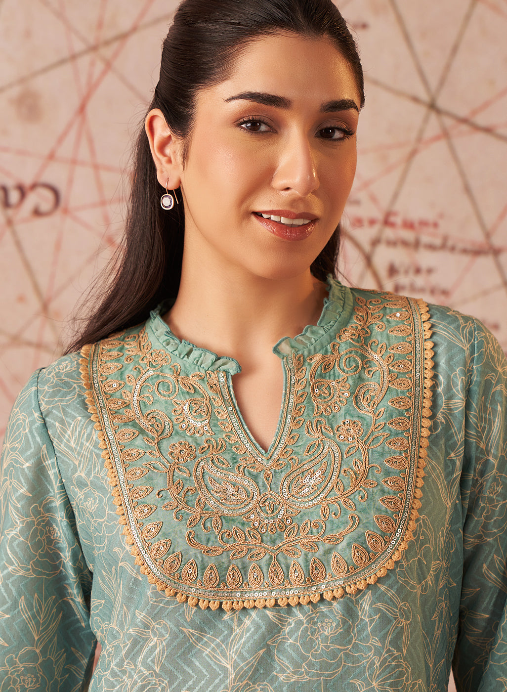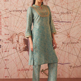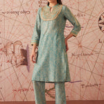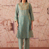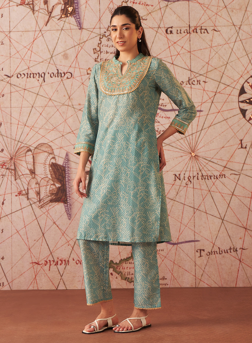Sama Sea Green Printed Cotton Jacquard Co-ord Set for Women