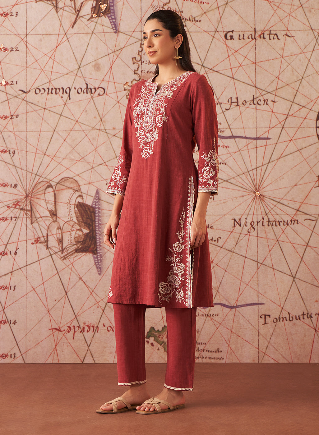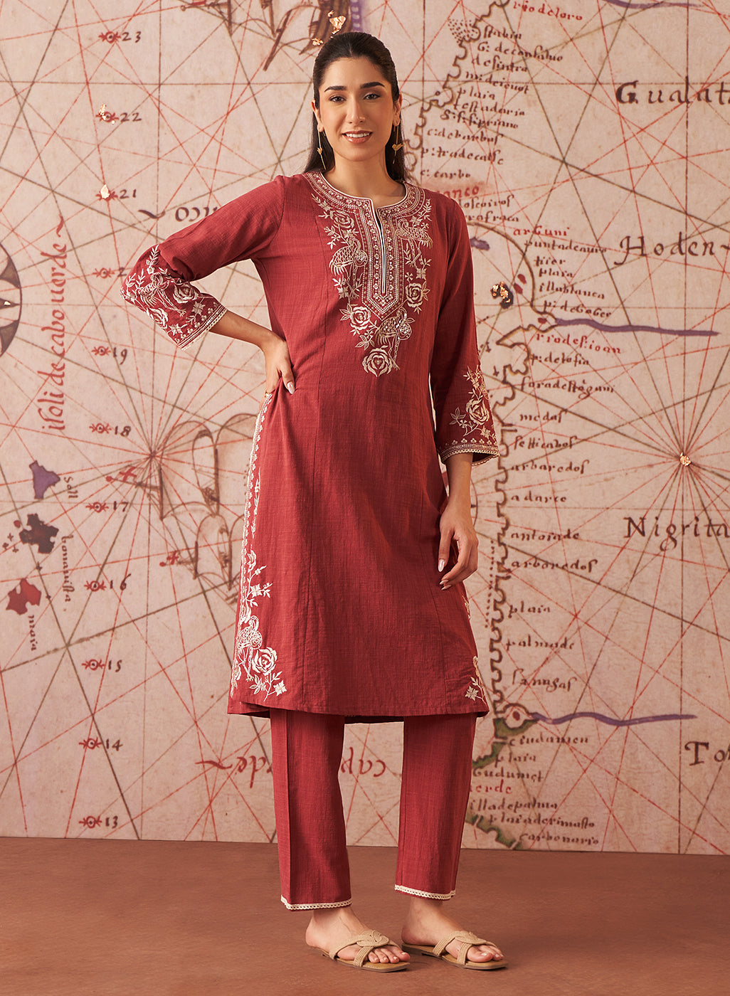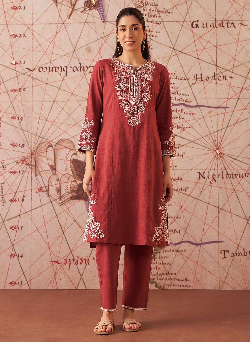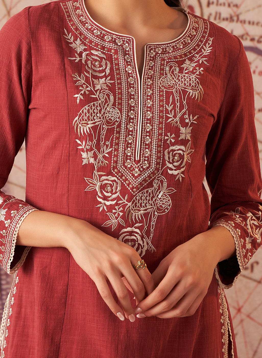 Our Sarina Embroidered Co-ord Set for Women is exquisitely tailored for festive occasions. Made with breathable and lightweight textured cotton fabric, it promises utmost comfort throughout the day.