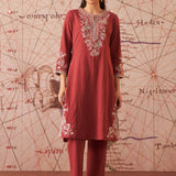 Sarina Peach Embroidered Cotton Co-ord Set for Women