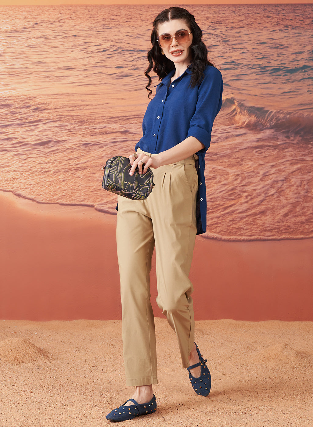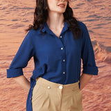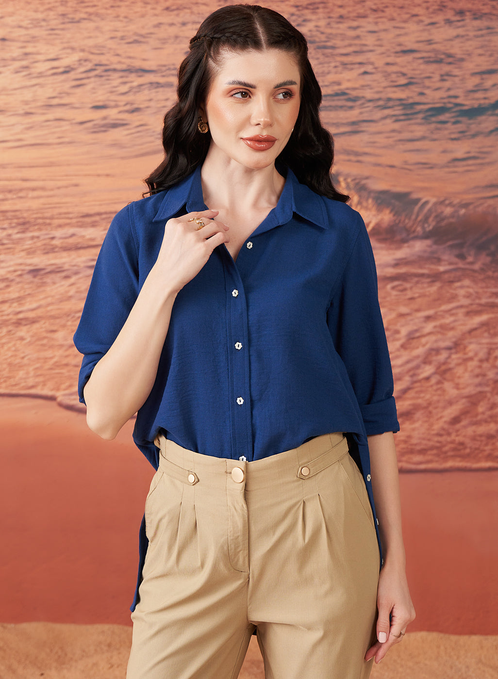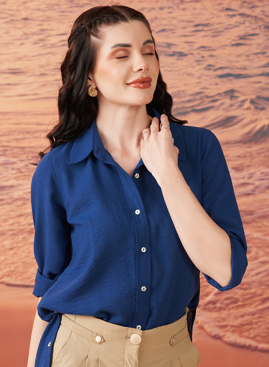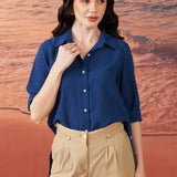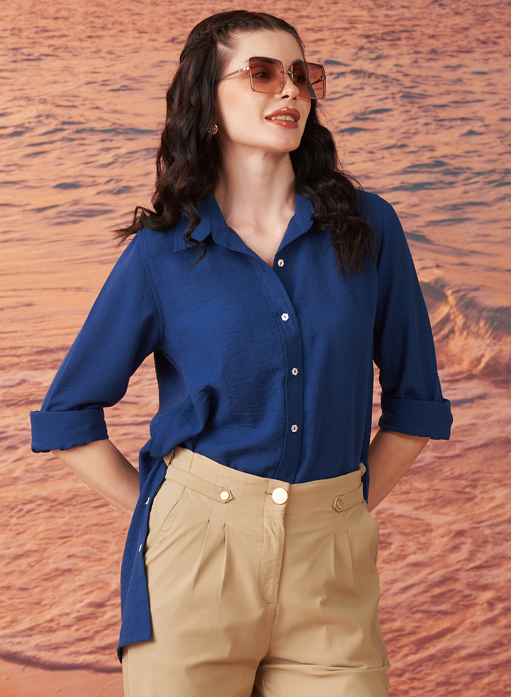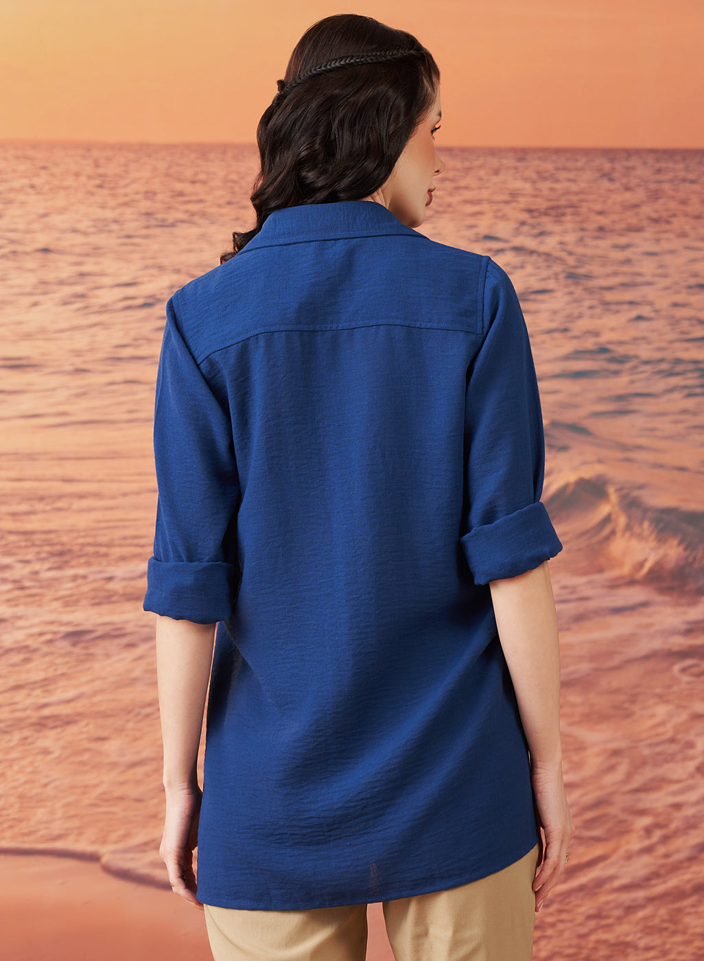 Shanaya Electric Blue Monochrome Cotton Gauze Shirt for Women