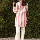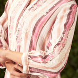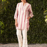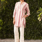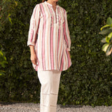 Sheen Pink Embroidered Cotton Gauze Straight Shirt for Women