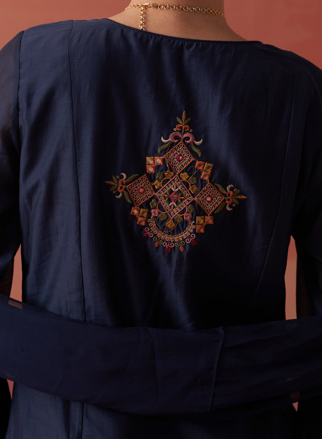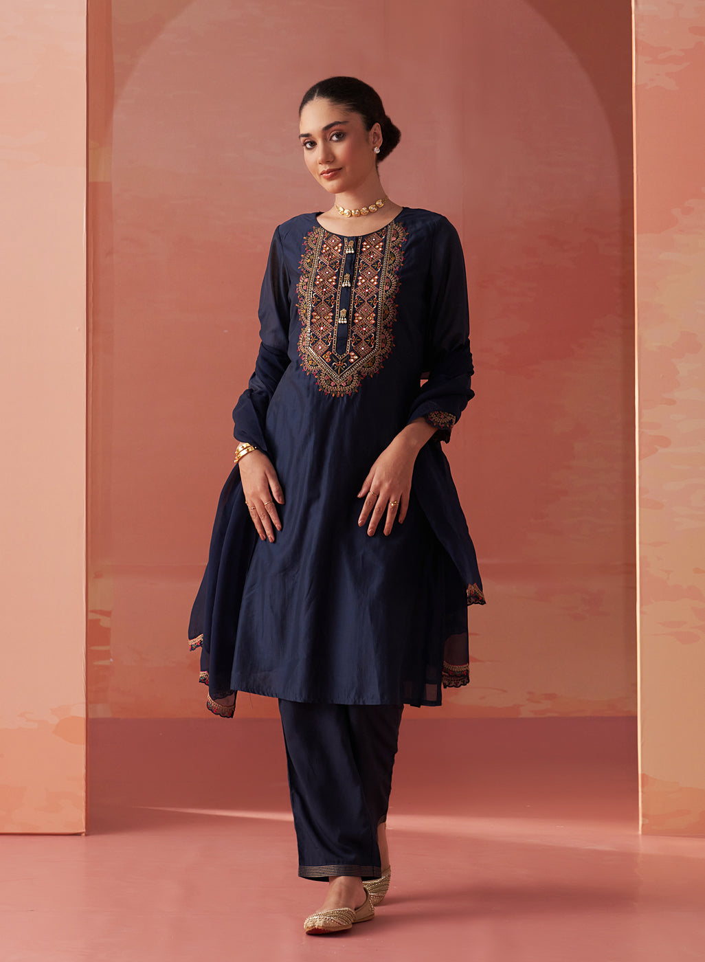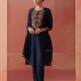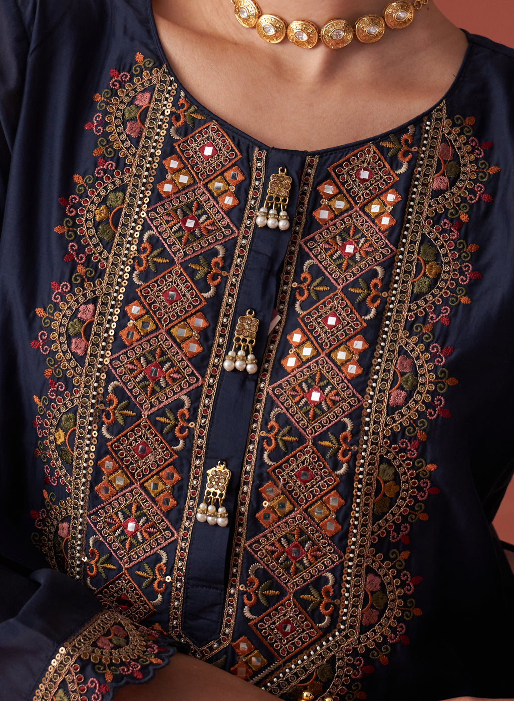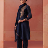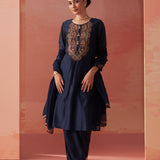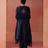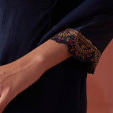 Shirin Navy Blue Chanderi Embroidered Kurta Set for Women