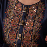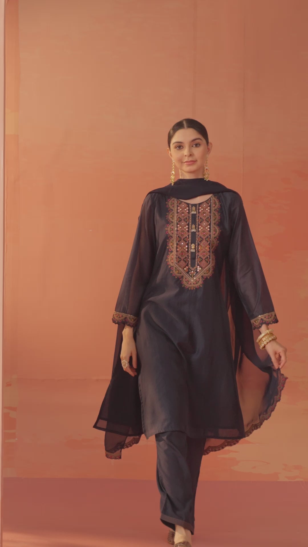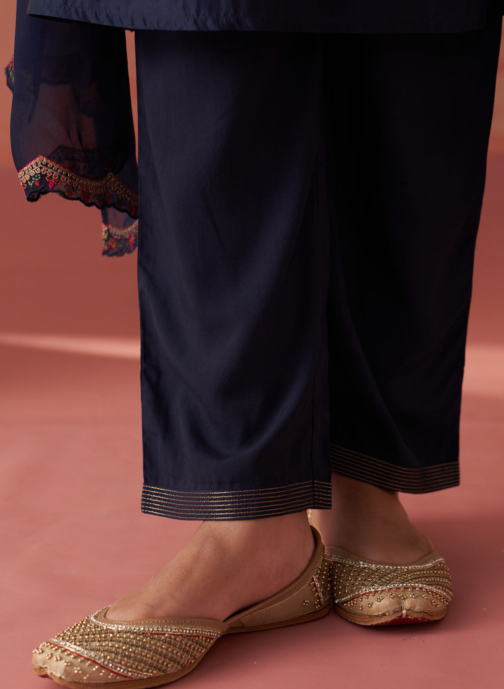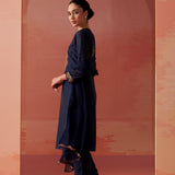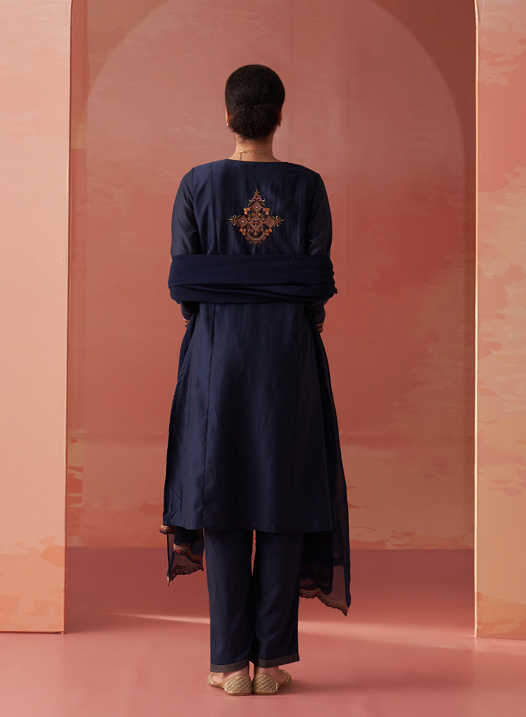 Shirin Navy Blue Chanderi Embroidered Kurta Set for Women