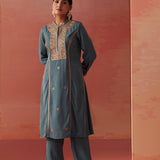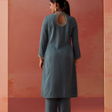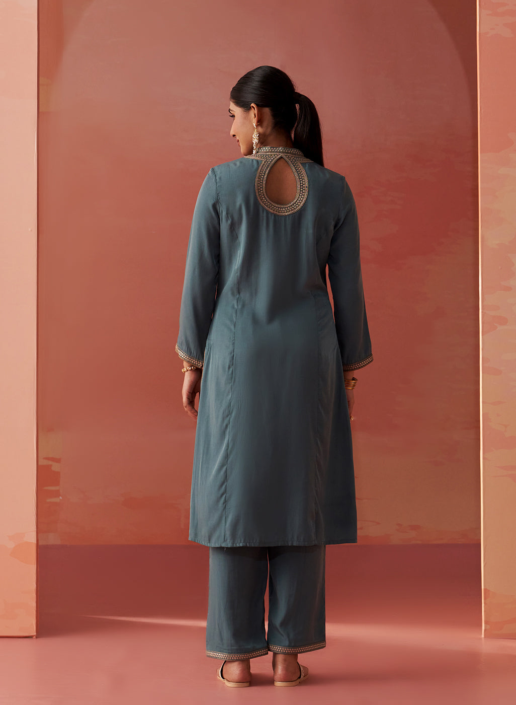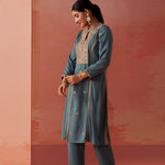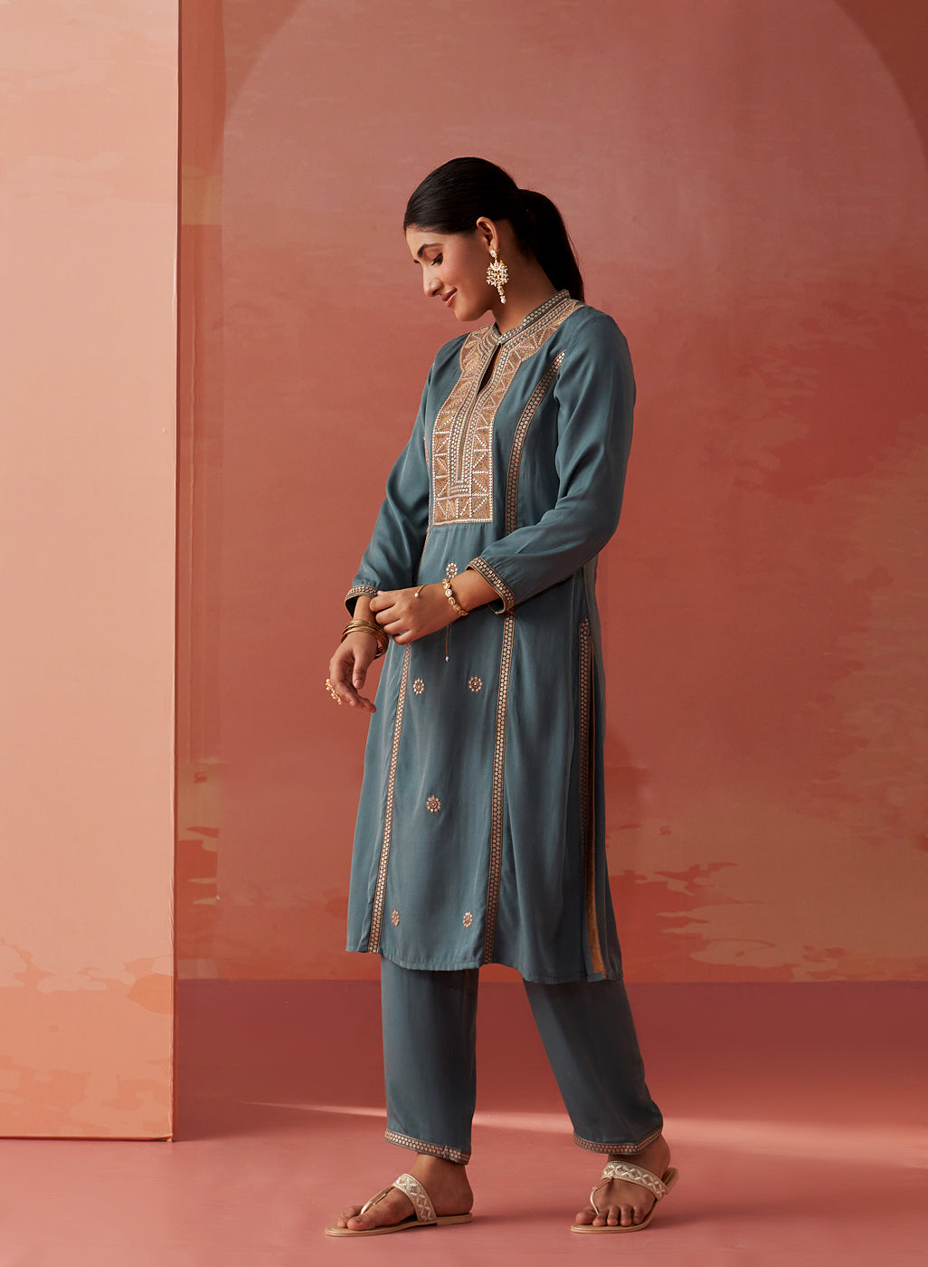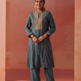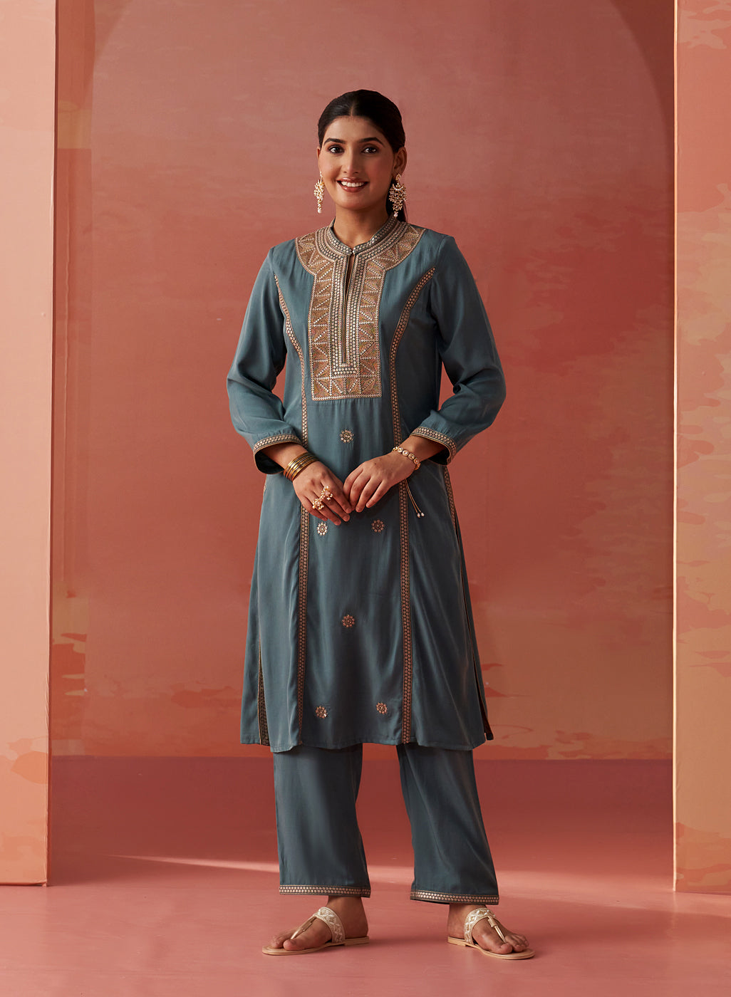Simra Smokey Blue Embroidered Rayon Co-ord Set for Women