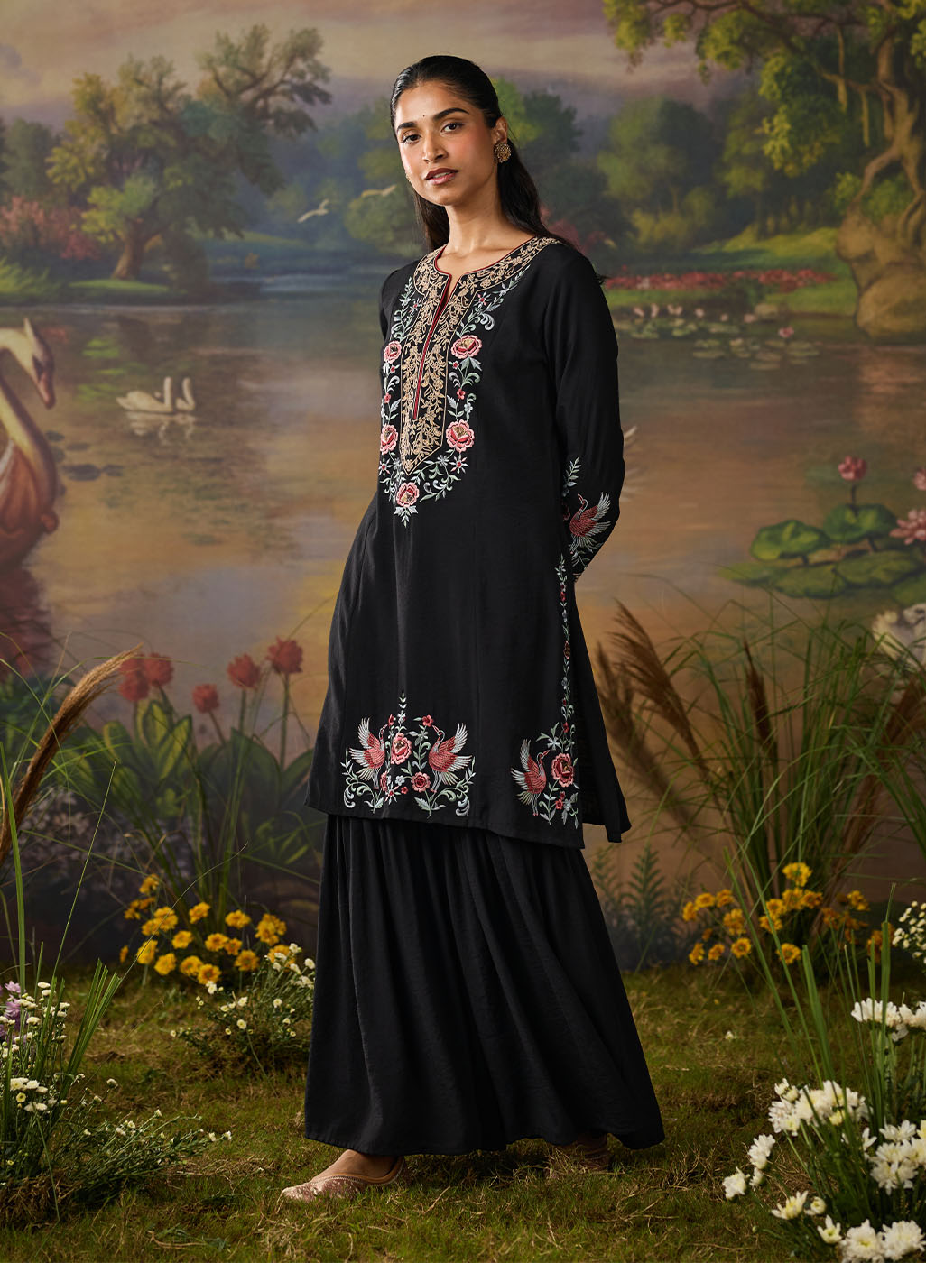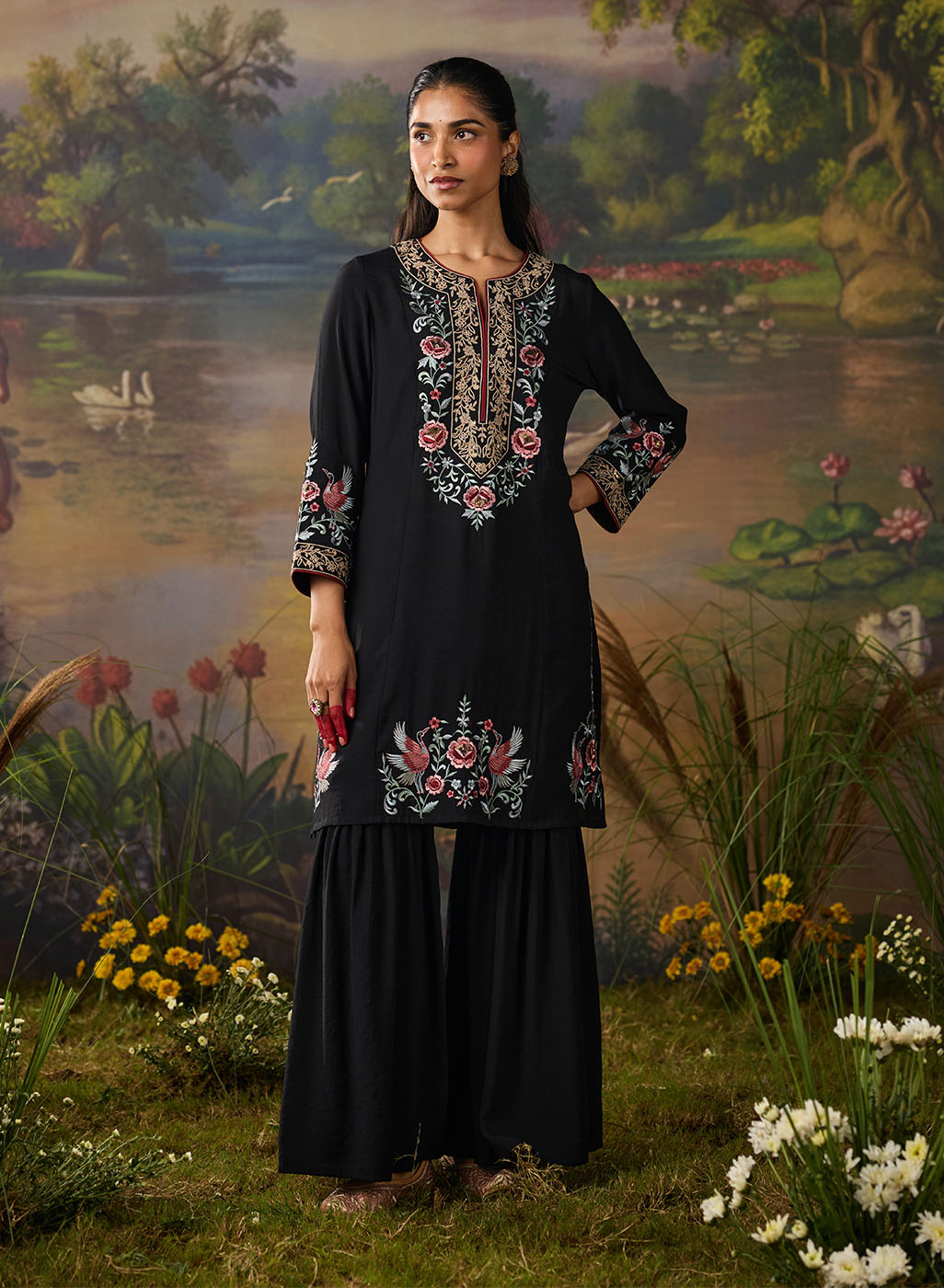 Siyahi Black Emboidered Co-ord Set with Shararas