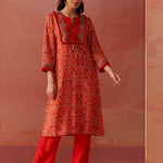 Sofia Bright Red Printed Rayon Co-ord Set for Women