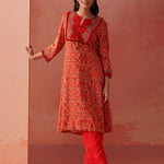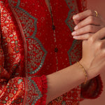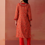 •Metal vintage buttons add a charming, retro feel, while the zari tassel hanging on the yoke brings a playful yet elegant touch to the outfit.