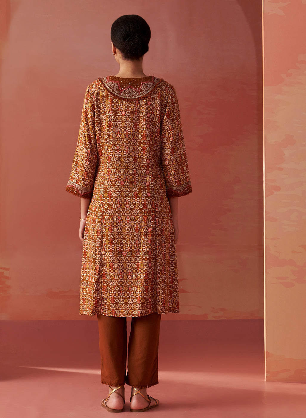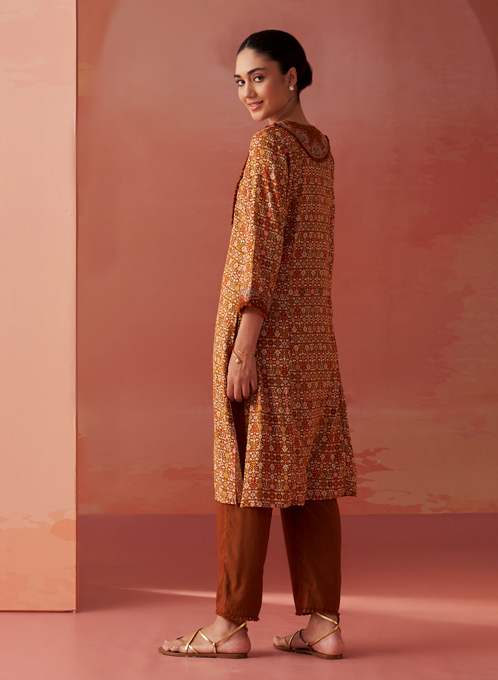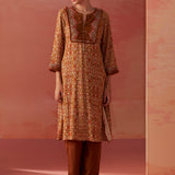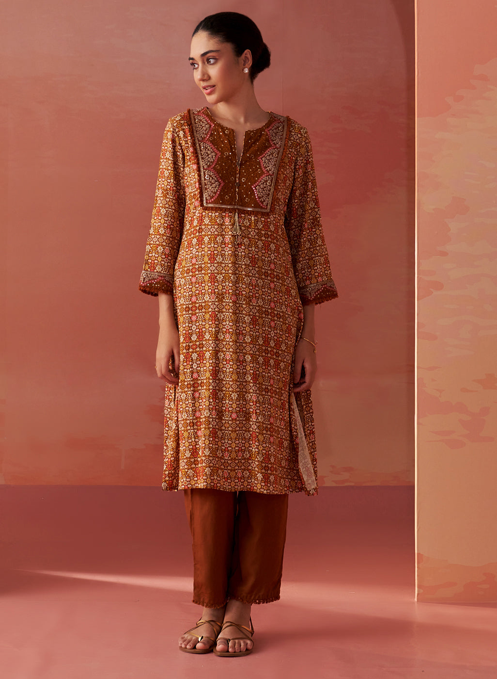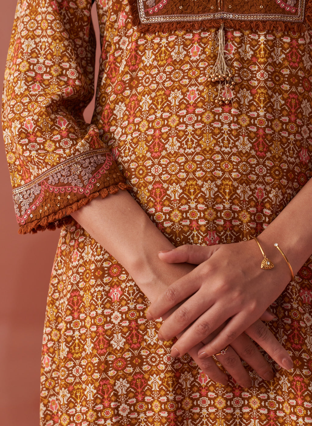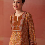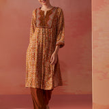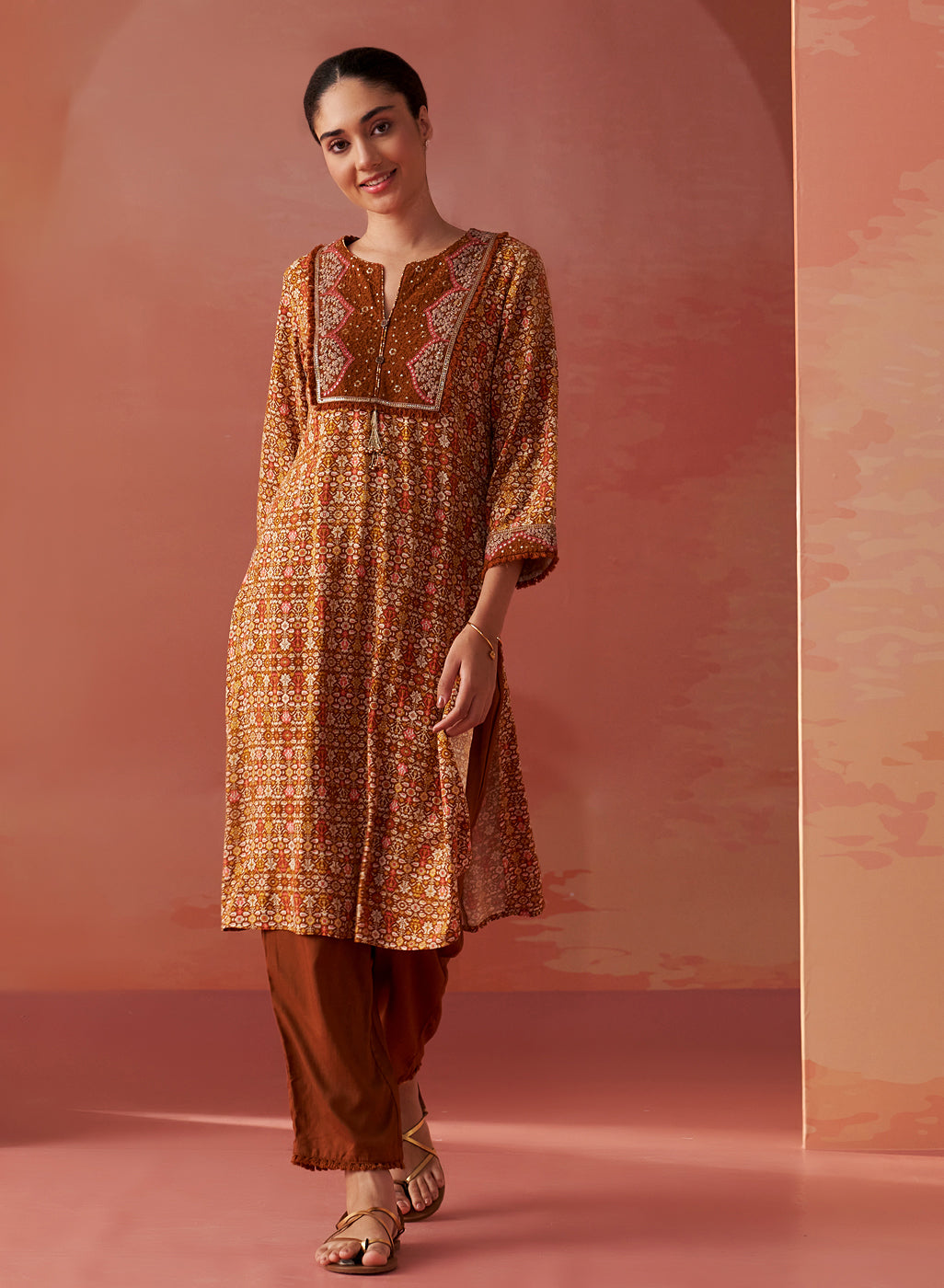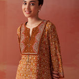 Sofia Ochre Printed Rayon Co-ord Set for Women