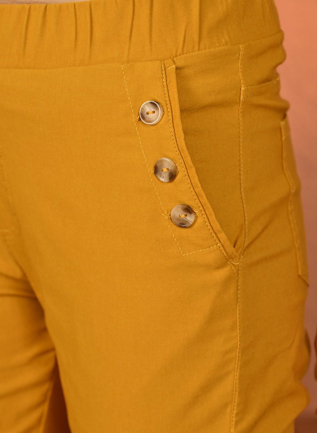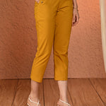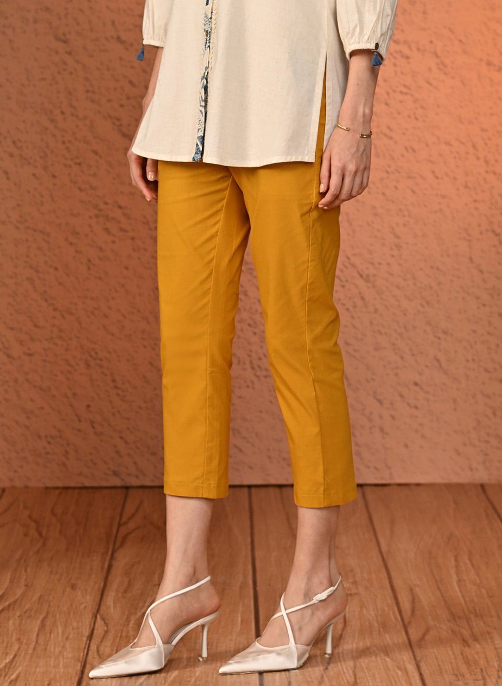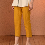 Mehr Mustard Cotton Relaxed Fit Trousers for Women