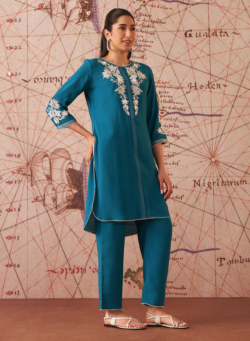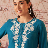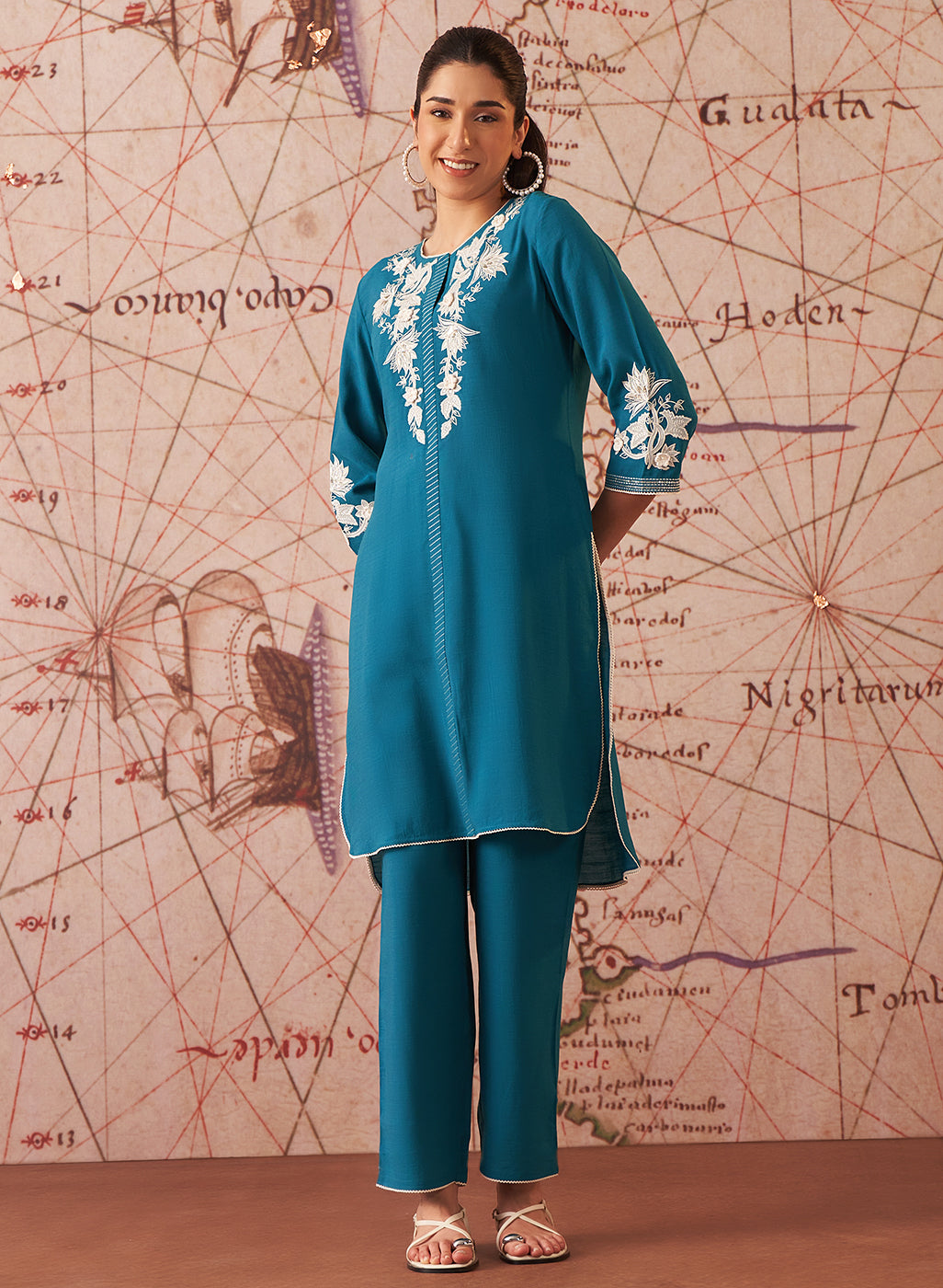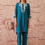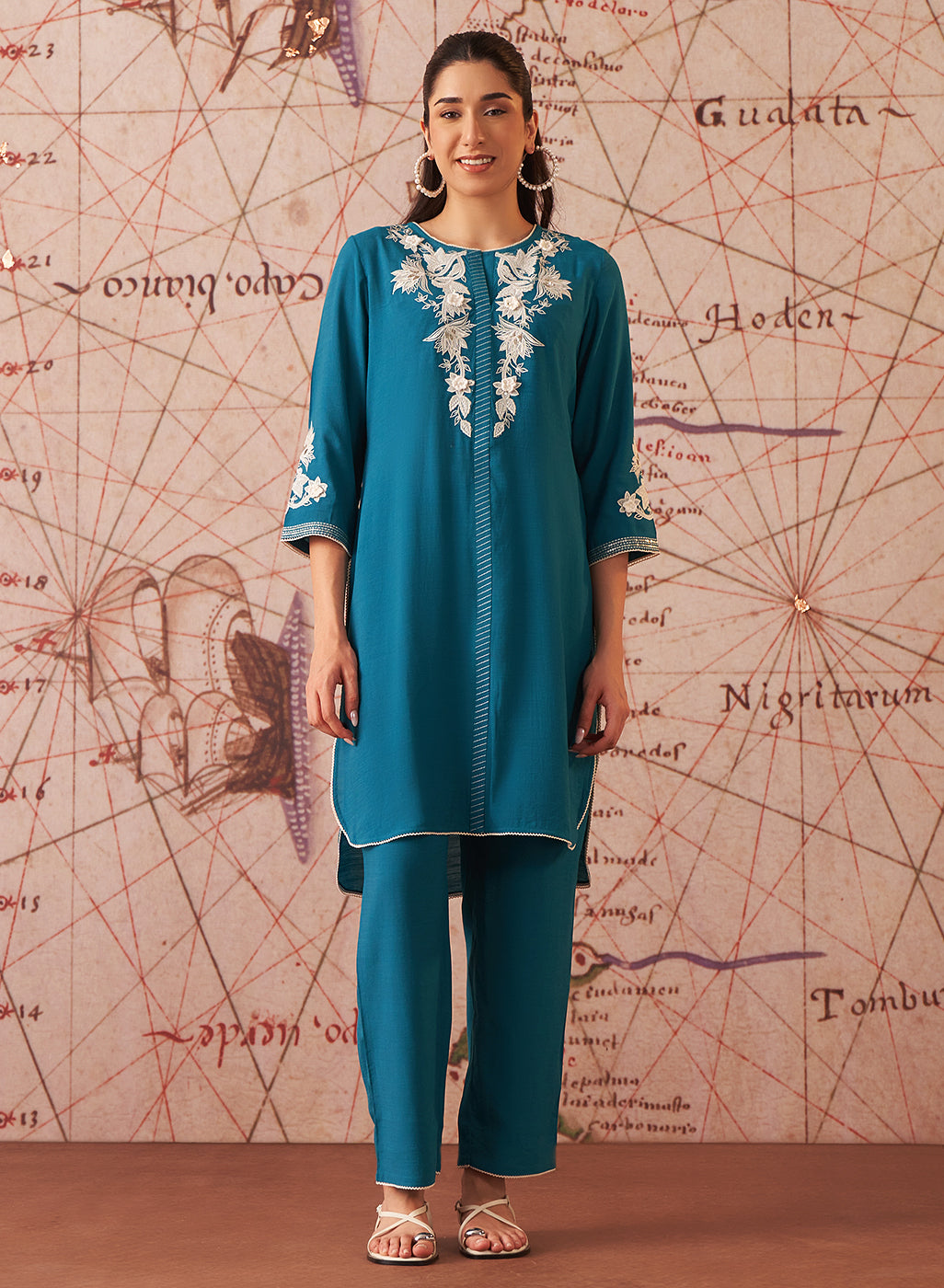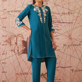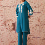 Sureena Teal Blue Embroidered Co-ord Set for Women