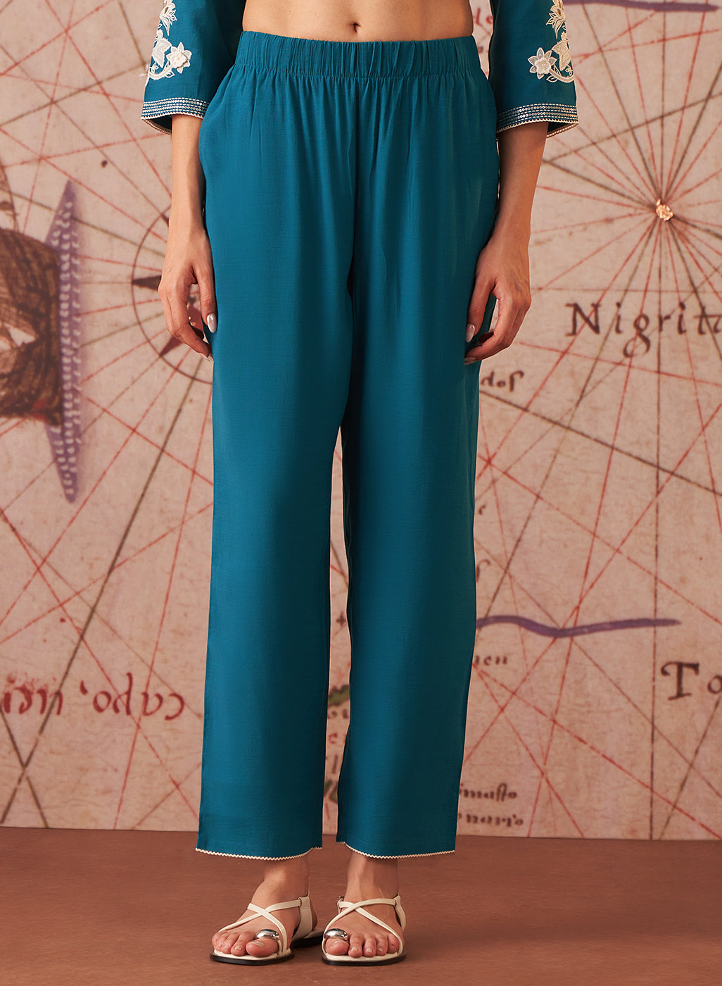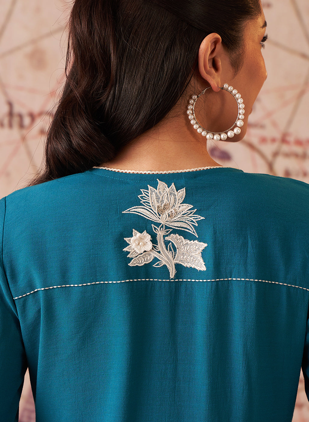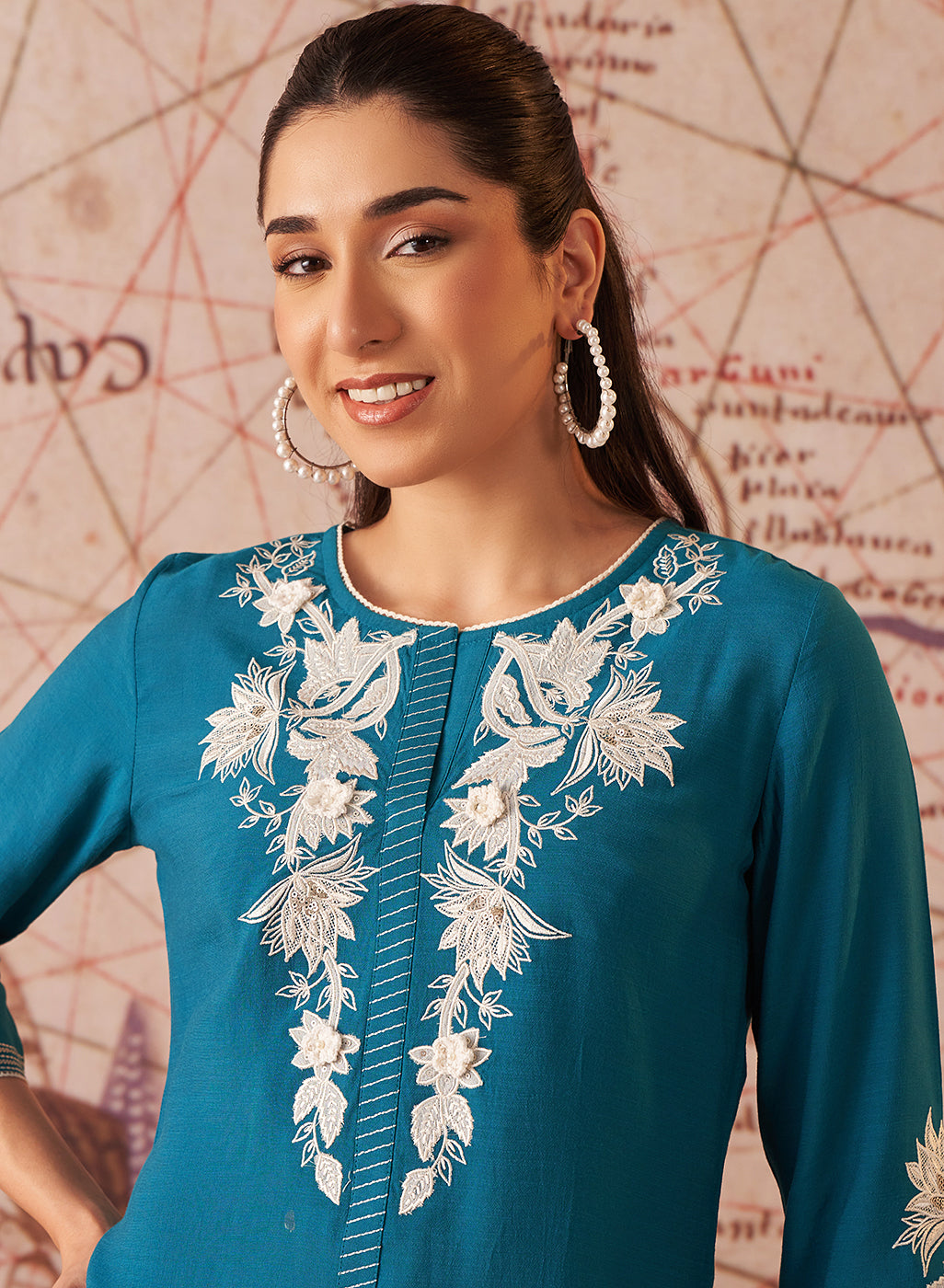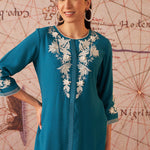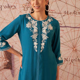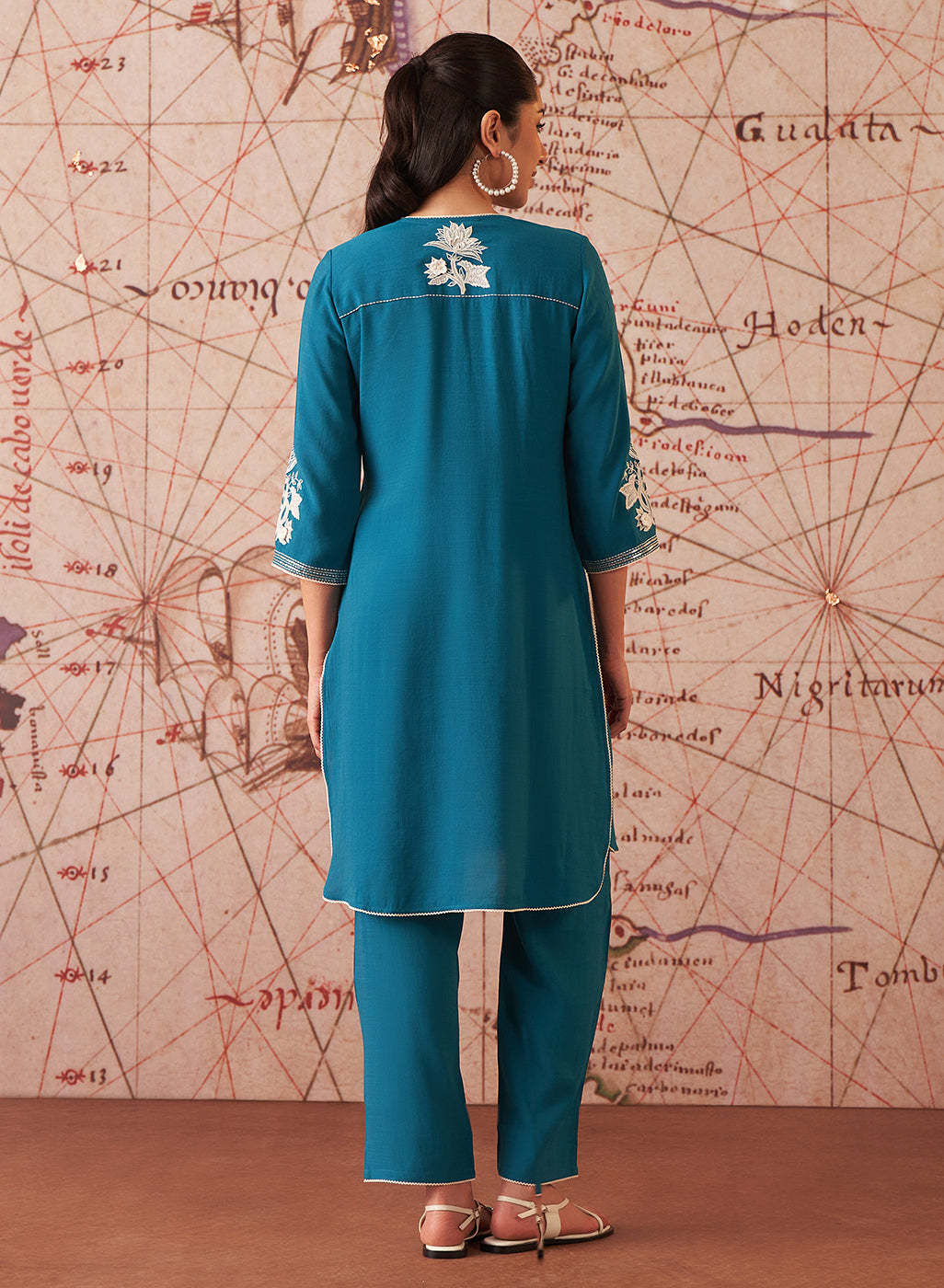 Sureena Teal Blue Embroidered Co-ord Set for Women