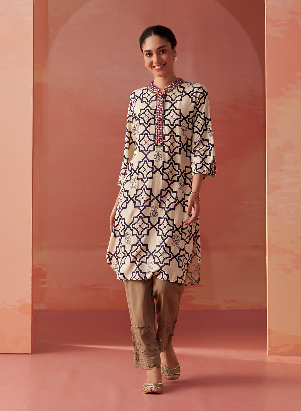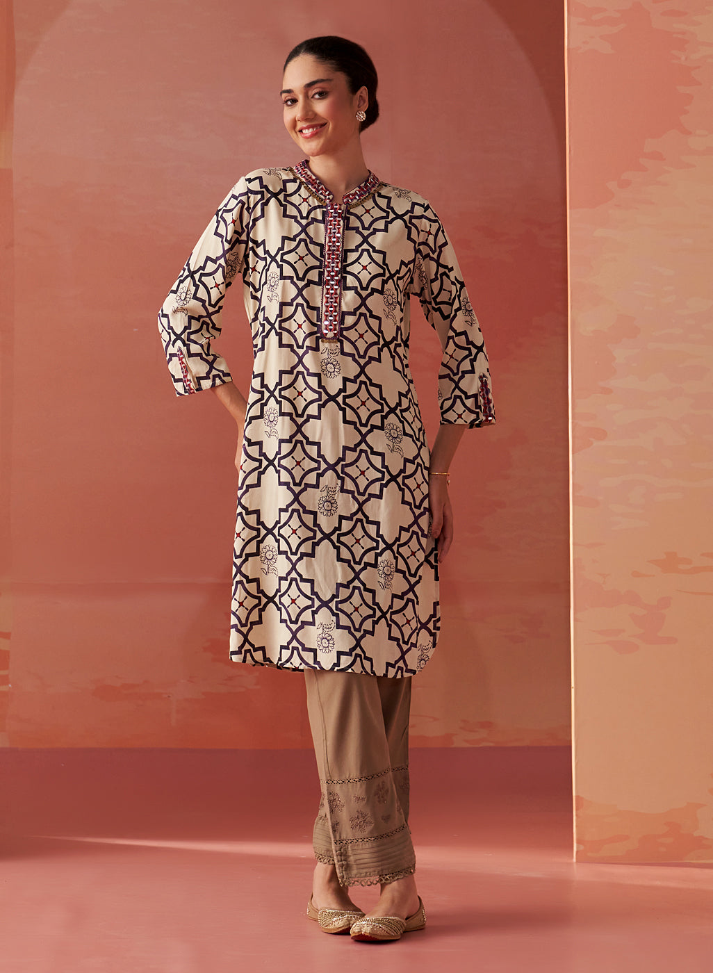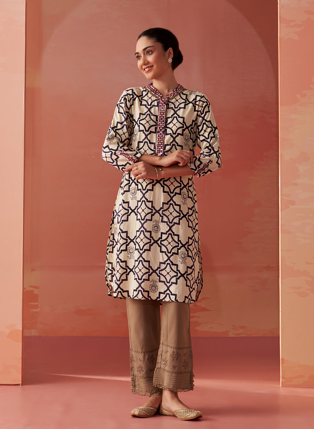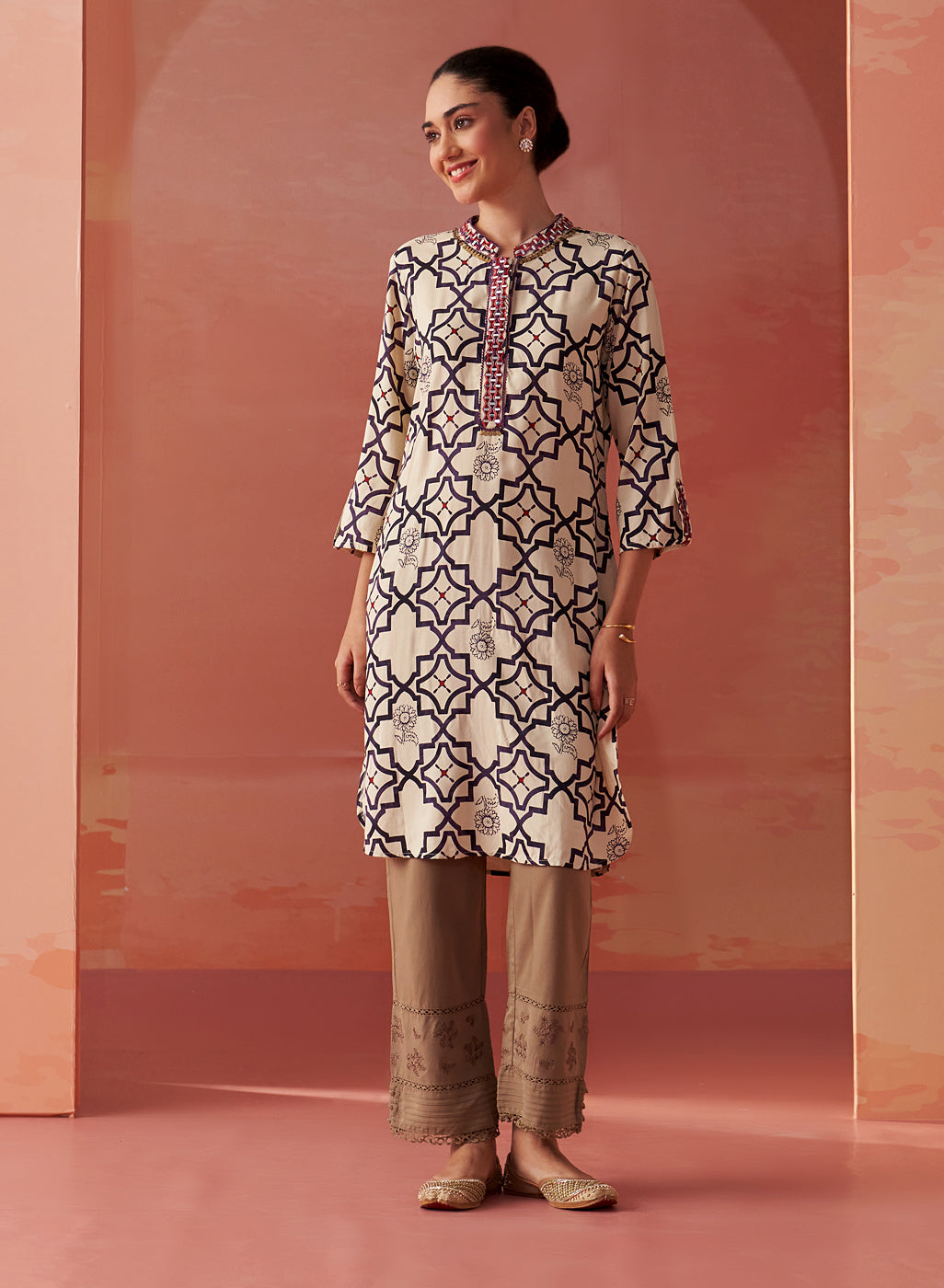 •This kurta features a classic straight silhouette, designed for a relaxed and refined fit.