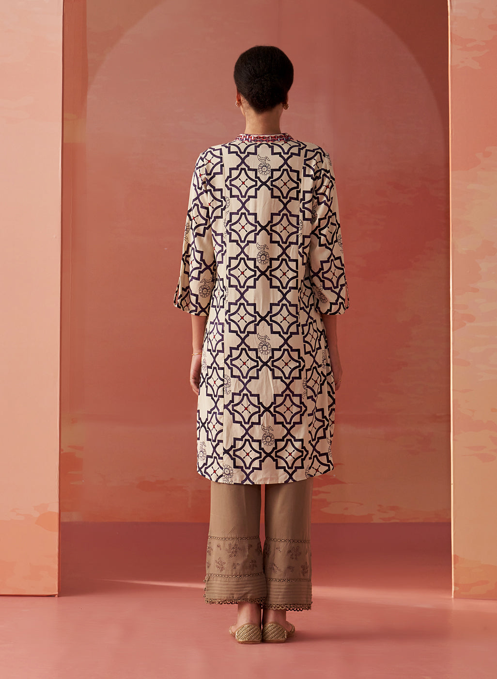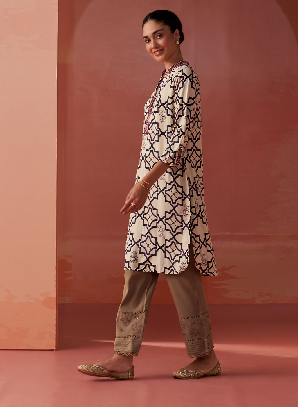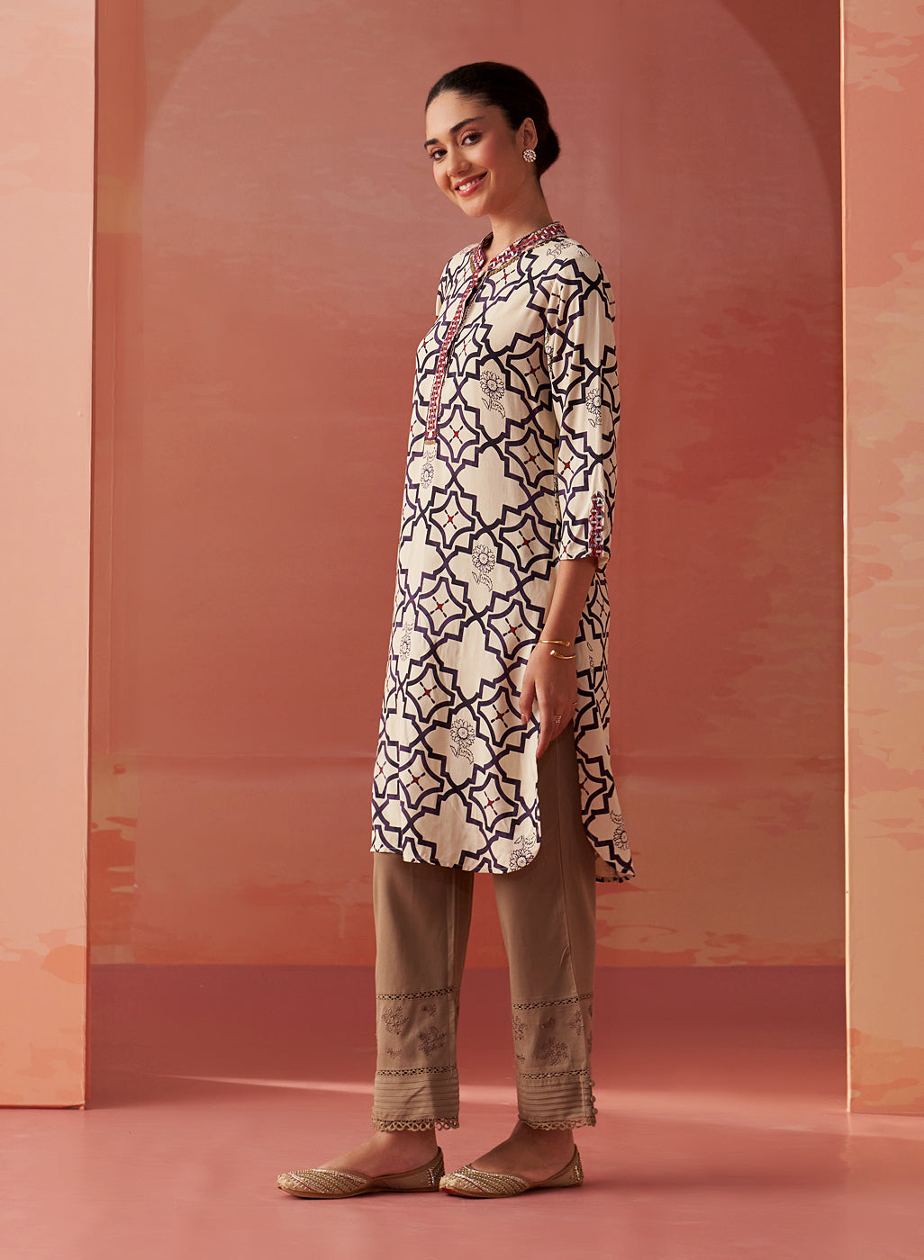 •The button fly closure enhances both style and practicality, and delicate lace detailing along the edges infuses the kurta with grace.