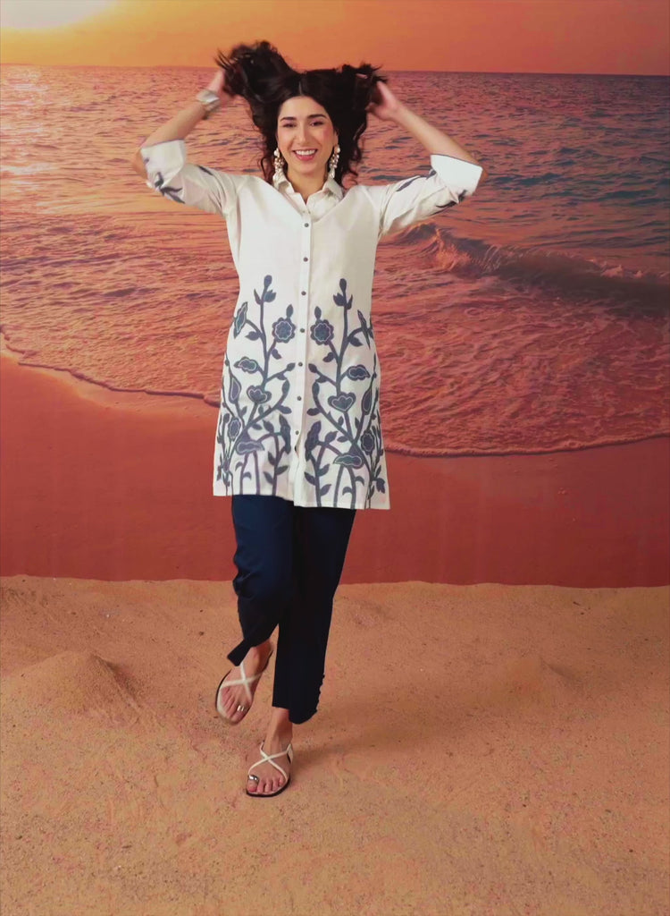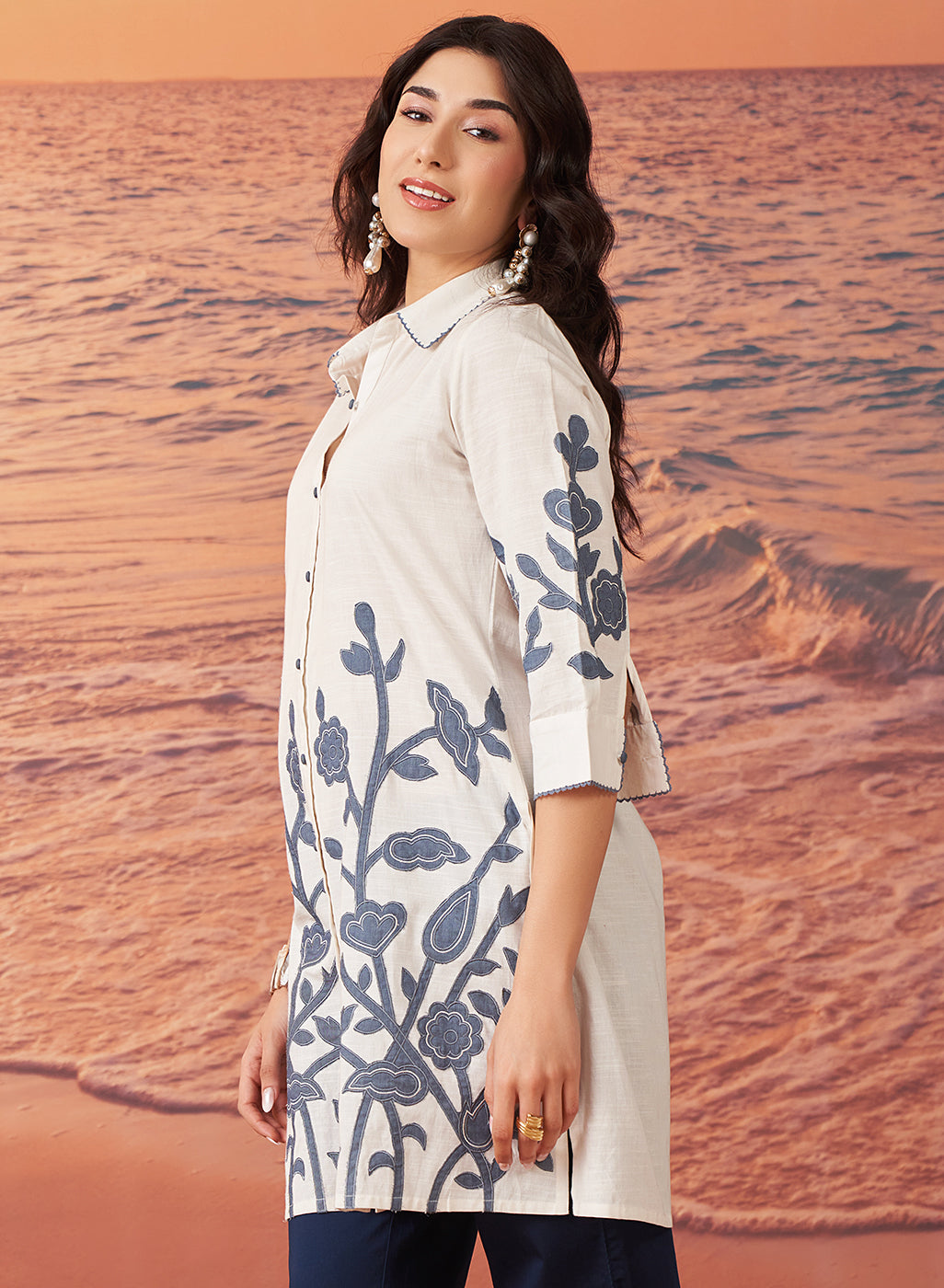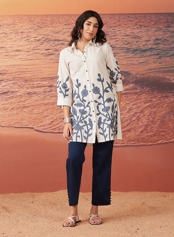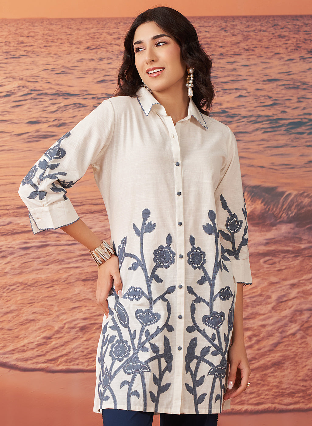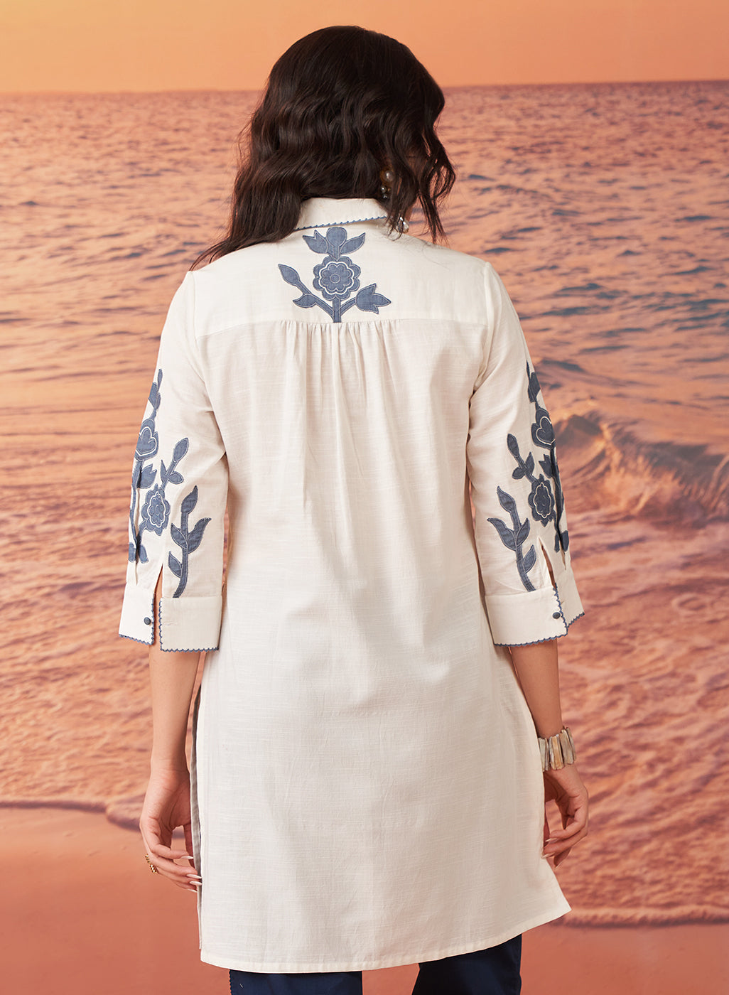 Urvi Ivory Embroidered Rayon Kurta for Women
