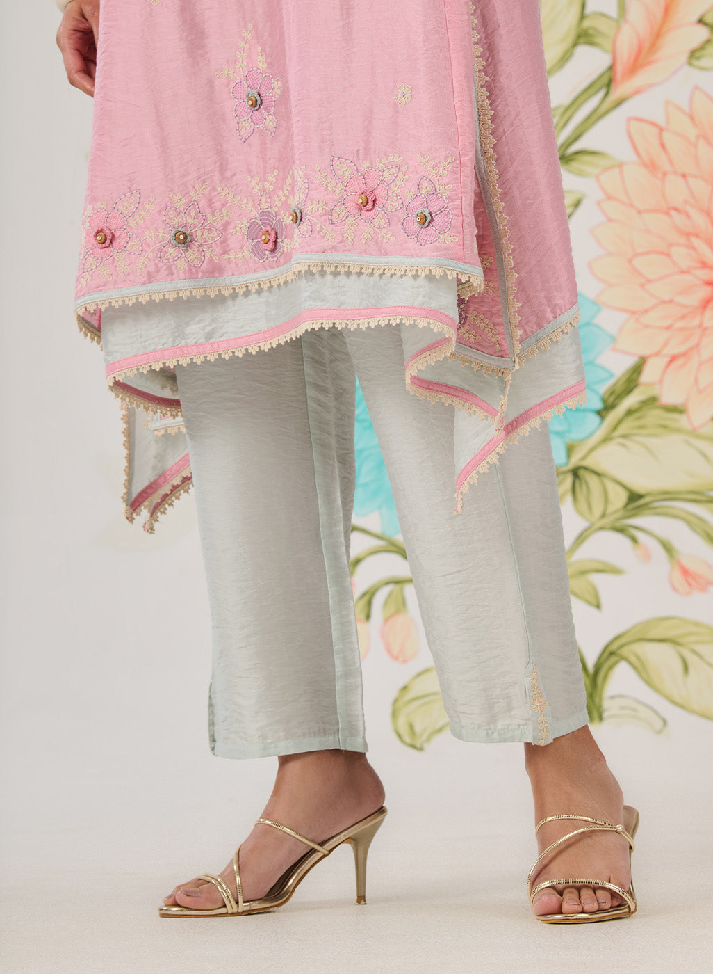 • Lace and edging details finish the kurta and pant hems beautifully.