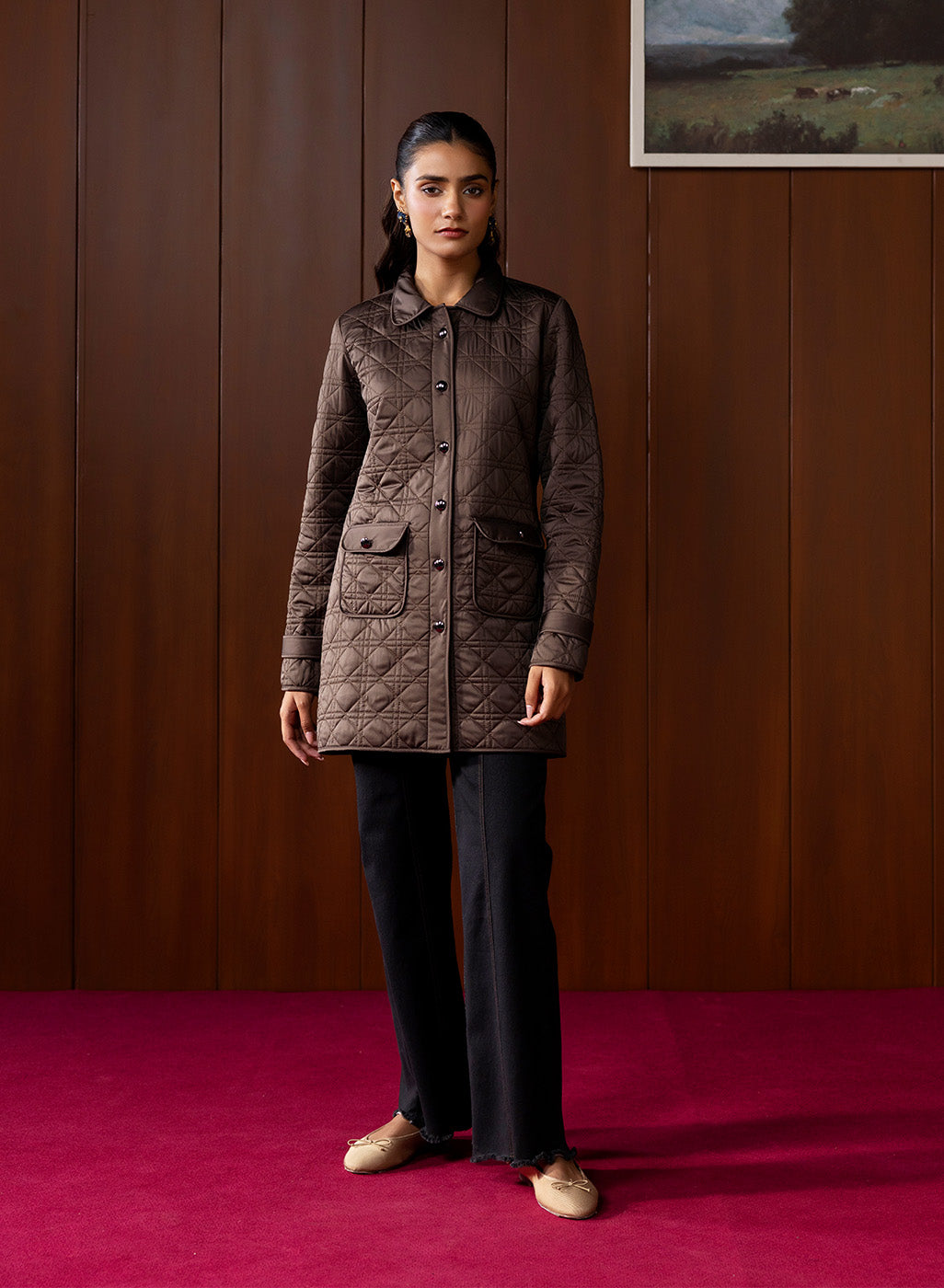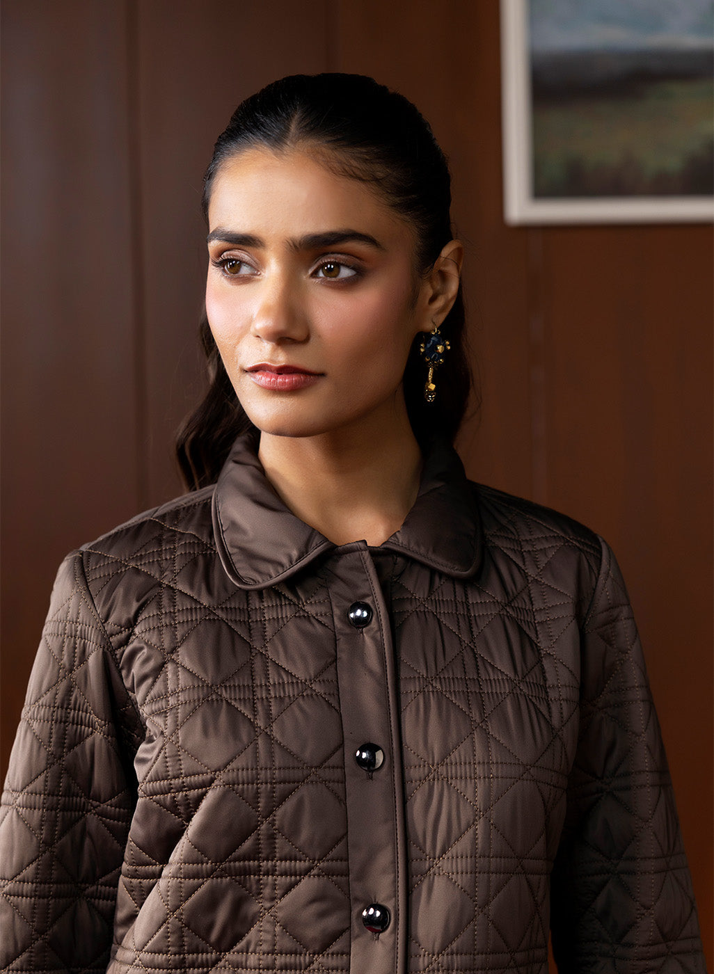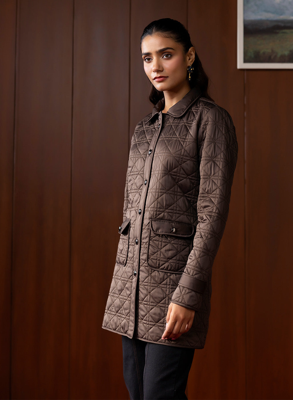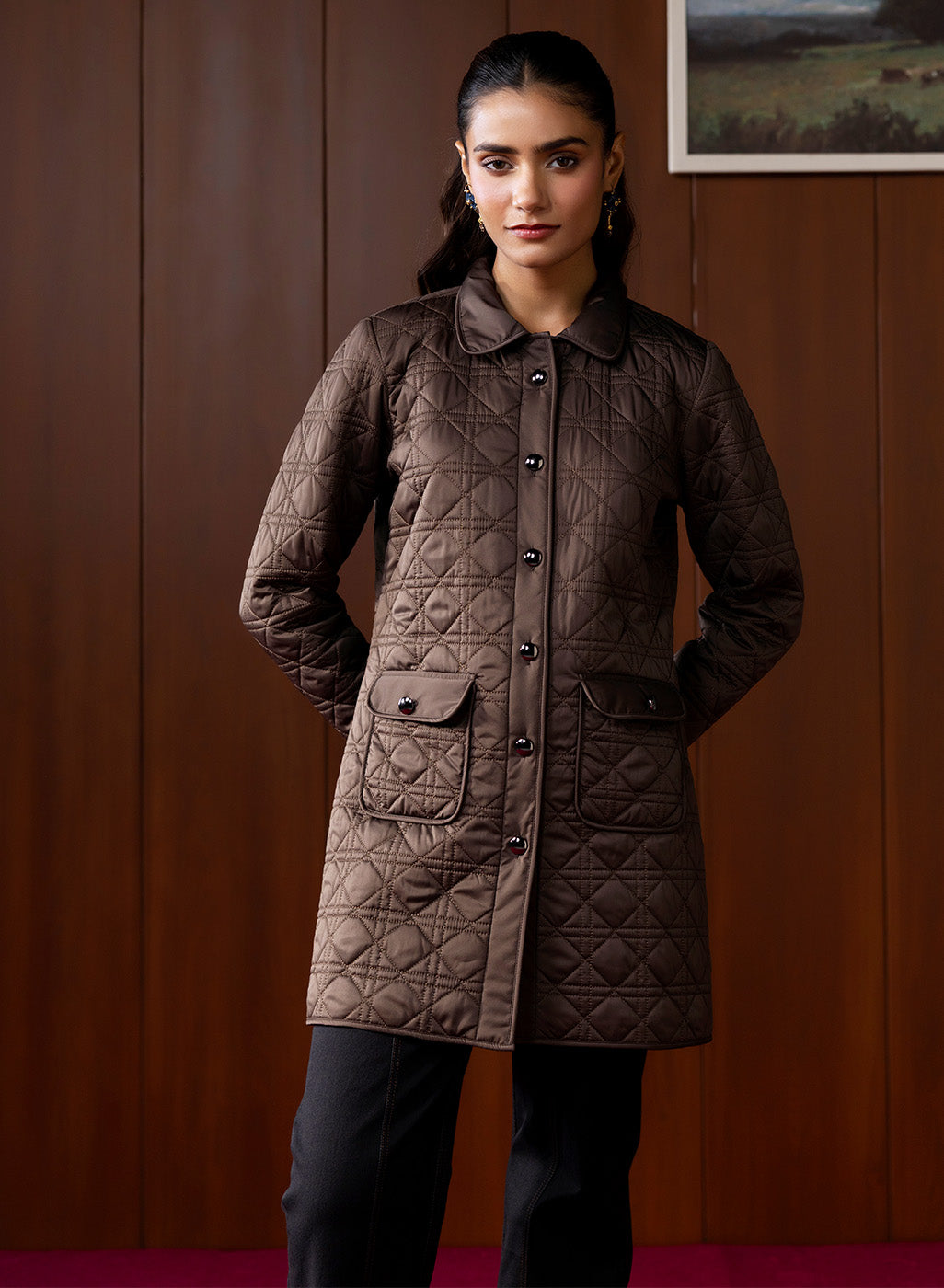 A classic winter staple, this brown quilted jacket blends structure with softness, offering a timeless layer you can rely on day after day. Its neat quilting, warm fur lining, and refined collar design come together to create a piece that feels effortlessly sophisticated without being overly formal. Versatile, comfortable, and winter-ready, it’s the kind of jacket that seamlessly elevates everyday dressing.