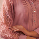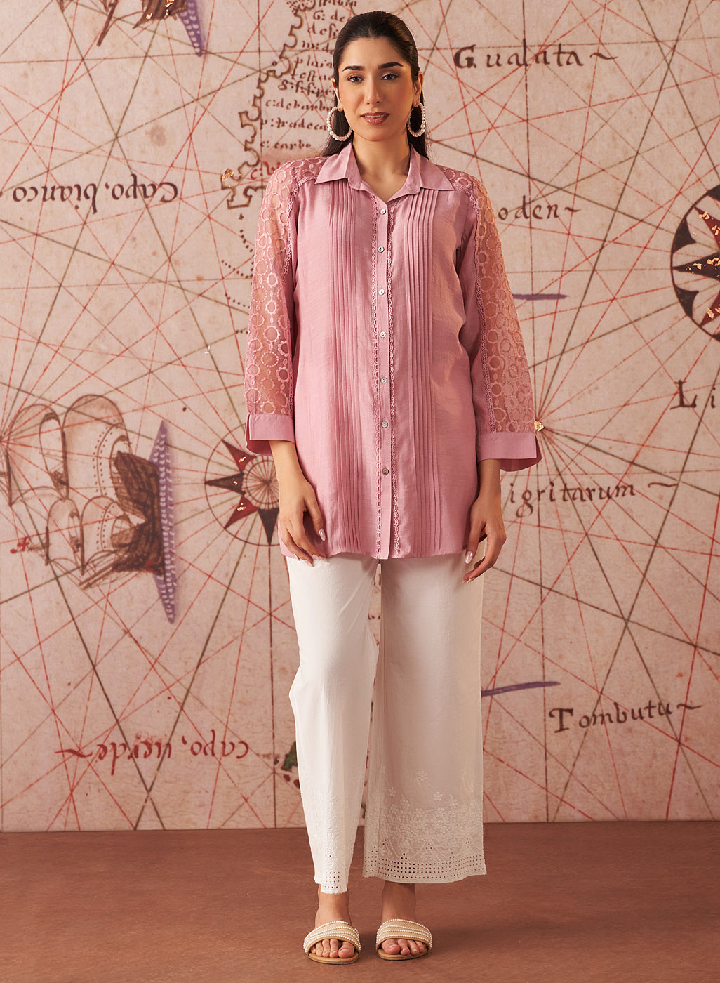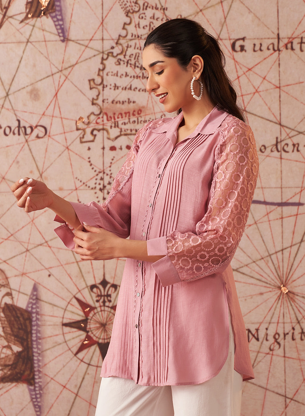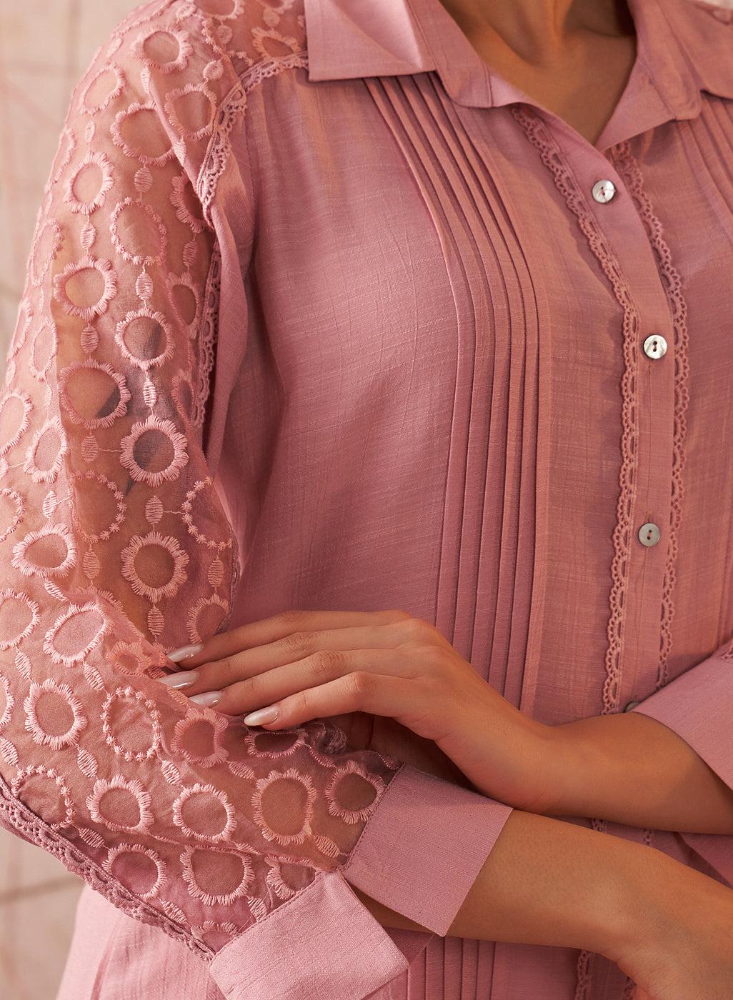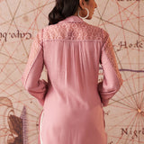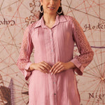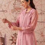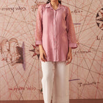 Vamya Carnation Pink Monochrome Embroidered Shirt for Women