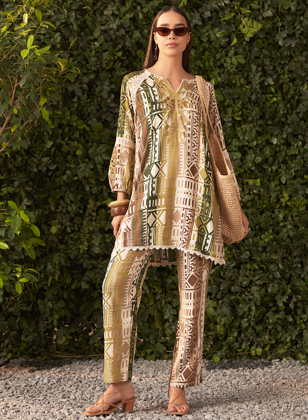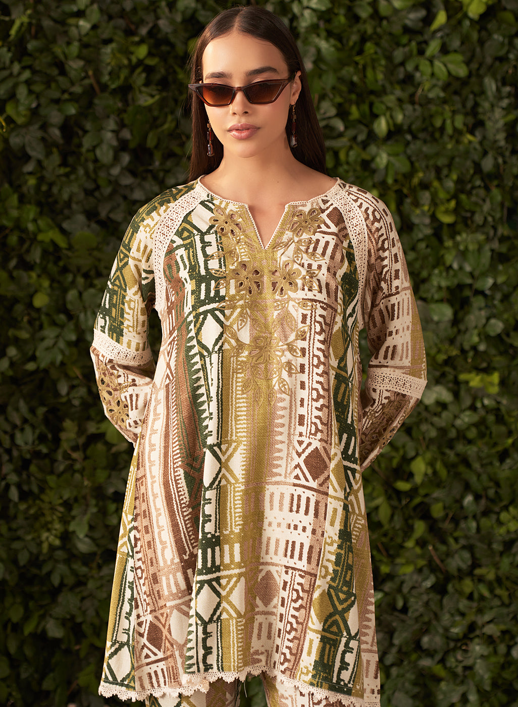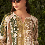 •The gathers on the sleeve ends provide a relaxed yet flattering silhouette, and the cutwork embroidery with resham thread enhances the piece with intricate detailing, giving it a luxurious and elegant feel.