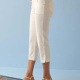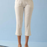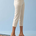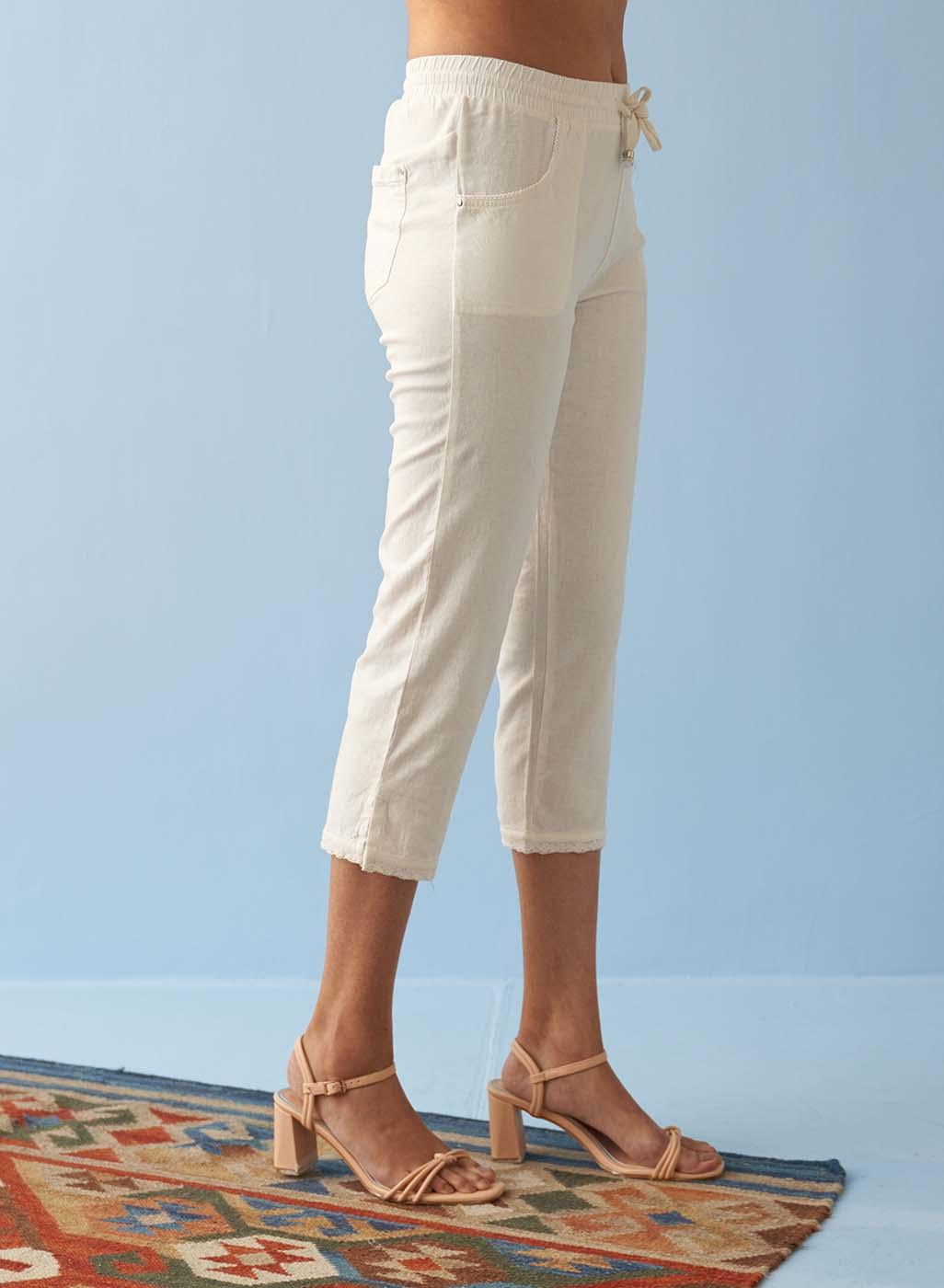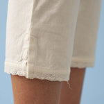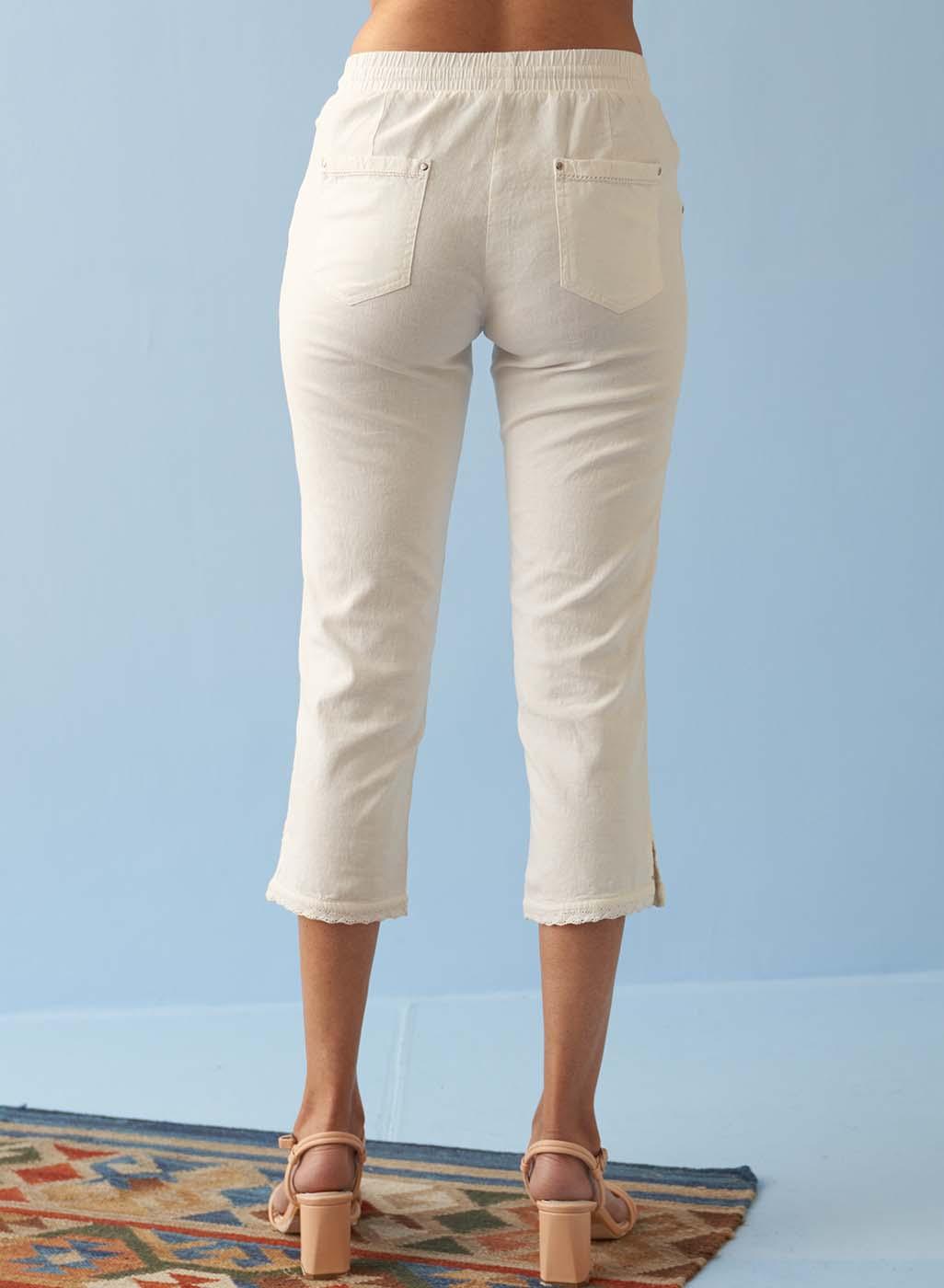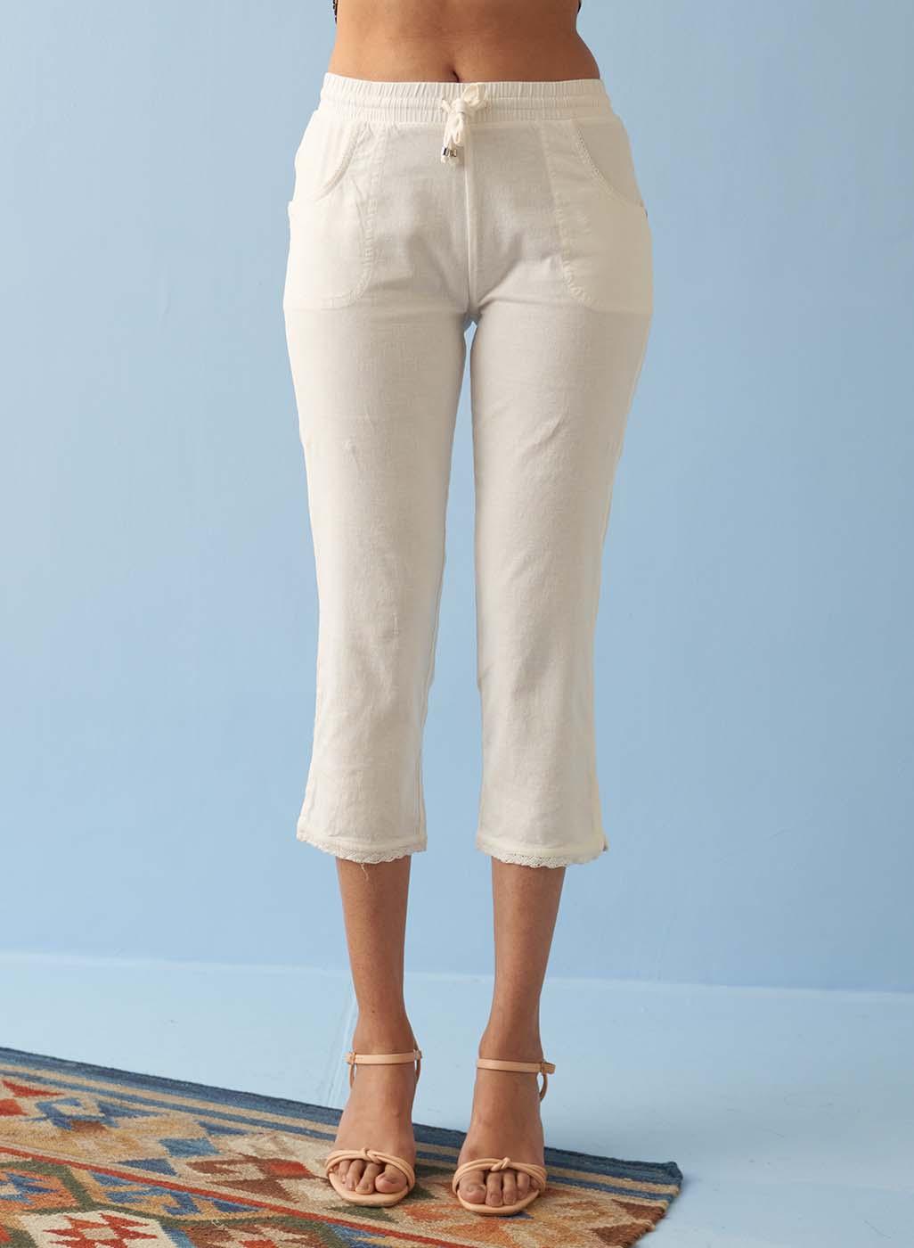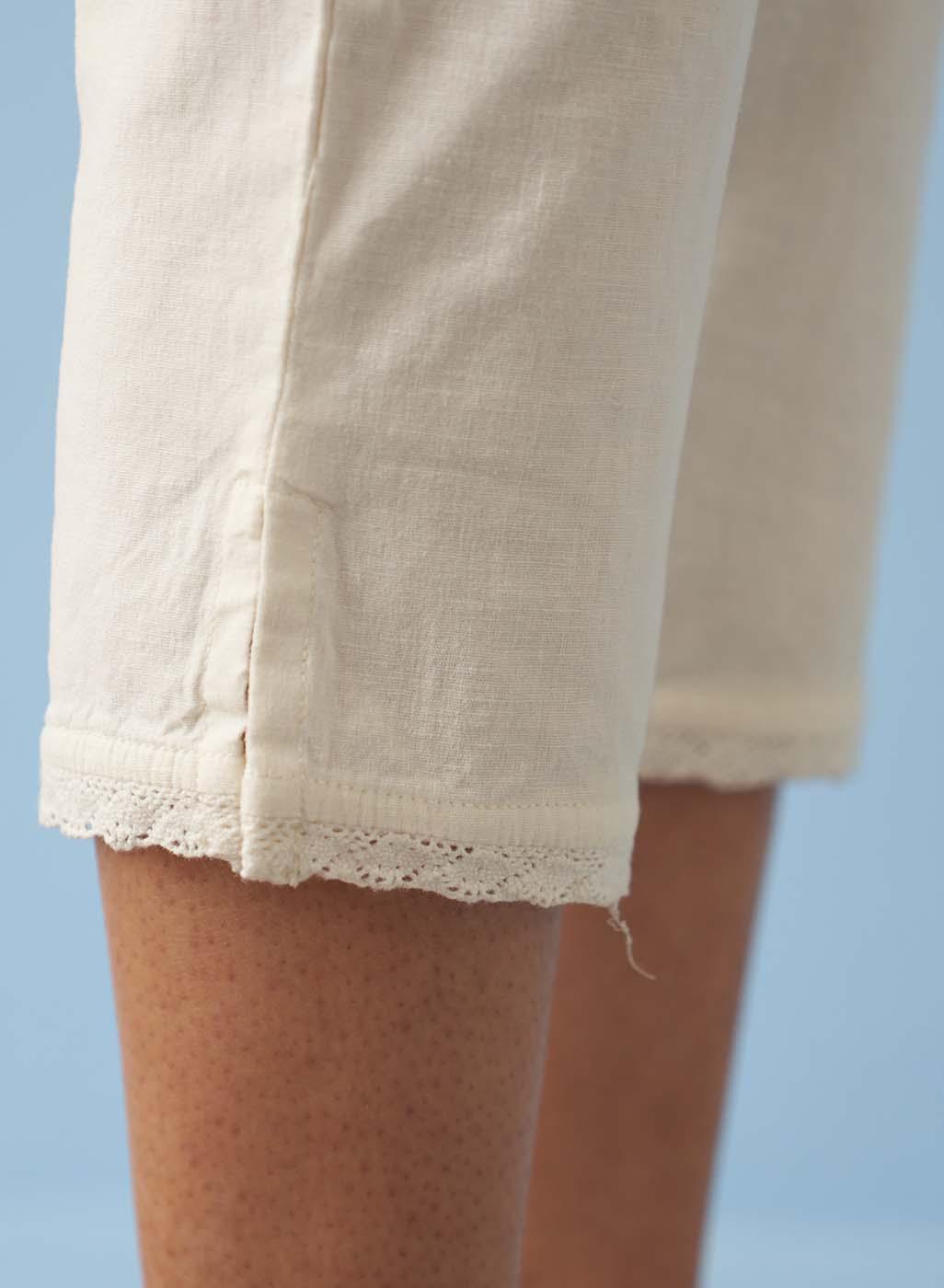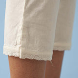 White Calf Length Capri with Hem Lace Detail - Lakshita