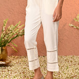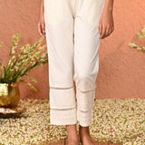 Navya White Embroidered Relaxed Fit Palazzo Pants for Women