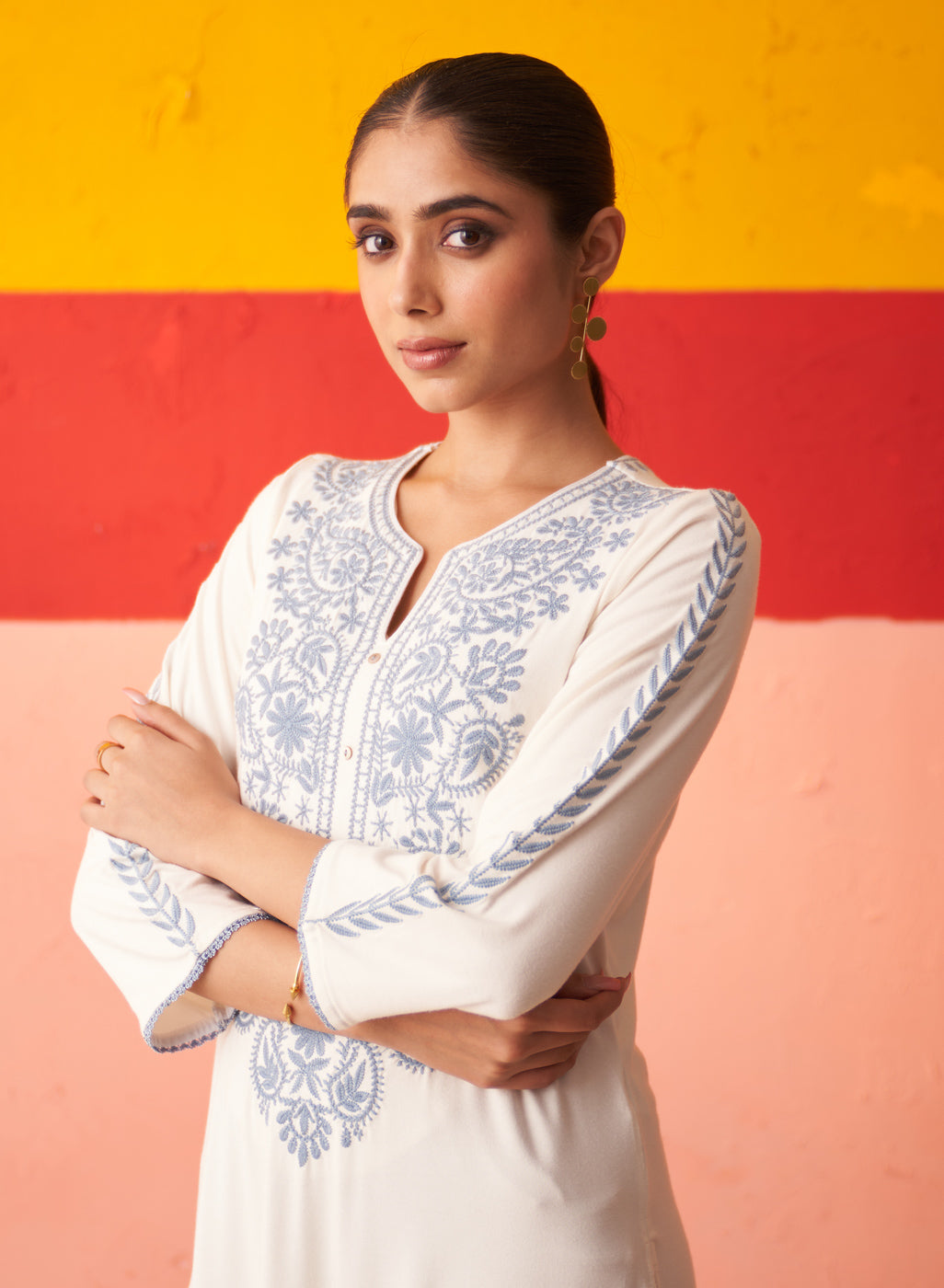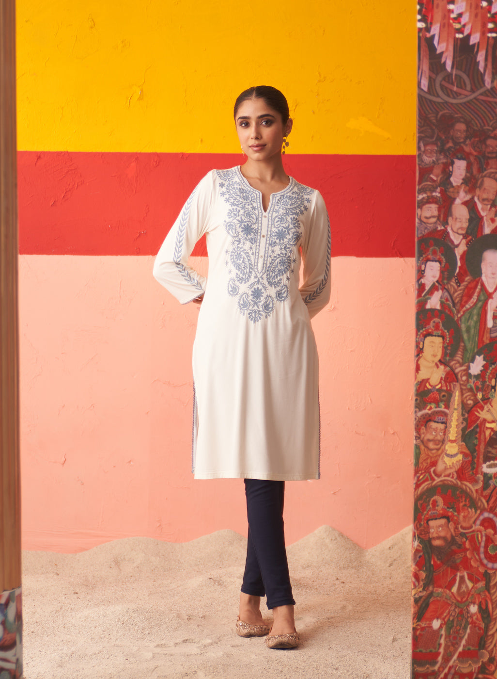 • This thread work kurta is a must have for every woman’s winter wardrobe.