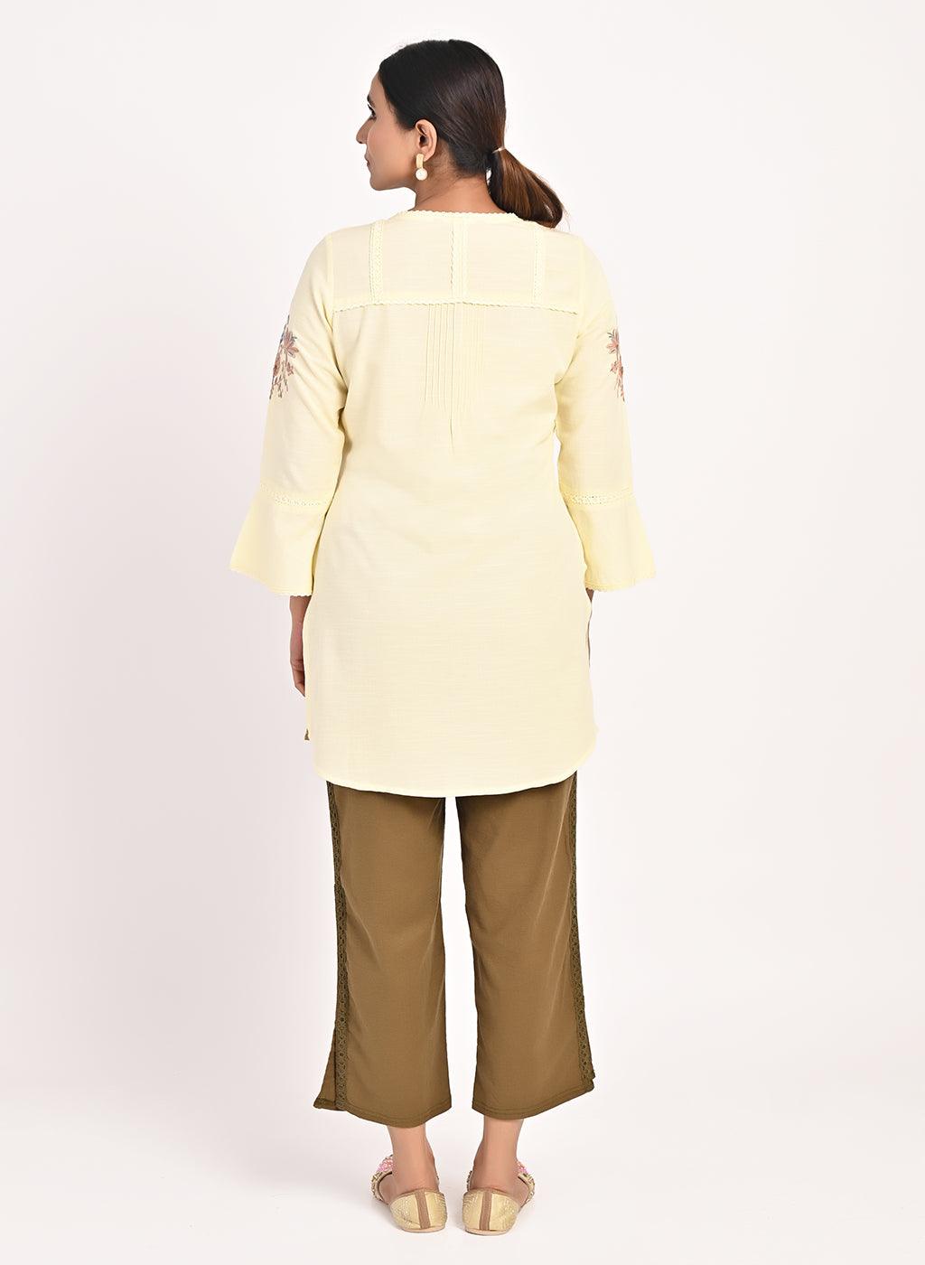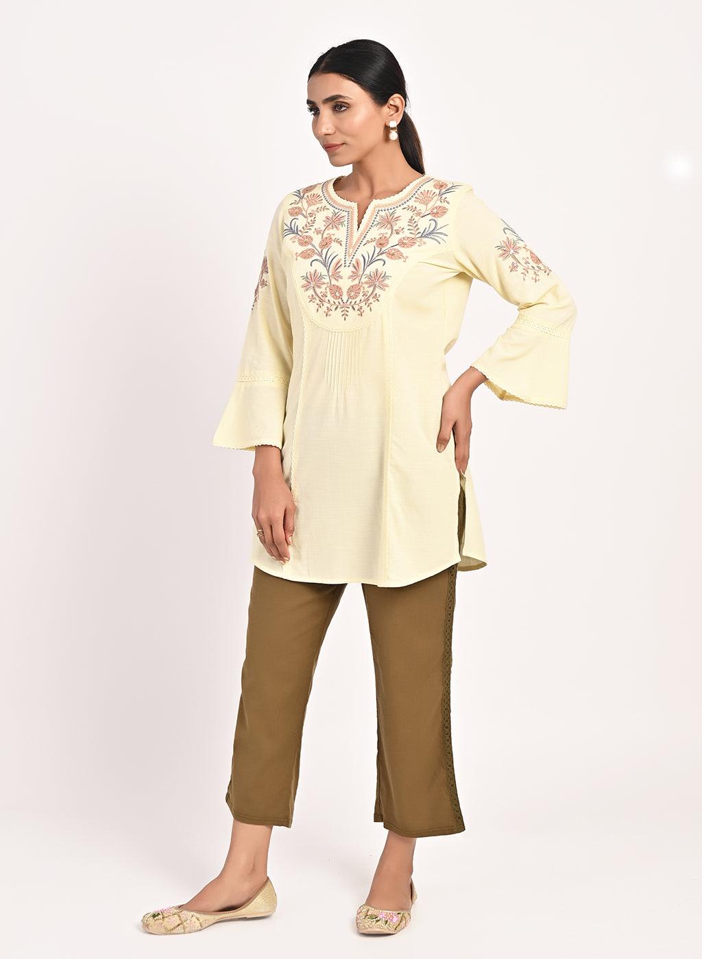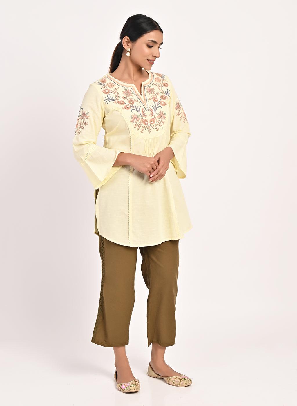 Who said you can’t look pretty while battling the summer sun? Invest in cotton tunics like this Yellow regular embroidered tunic. The overall look and feel of this tunic are chic with a hint of desi sass and when paired with matching glasses and traditional juttis, this tunic will make you look straight out of a Bollywood movie.