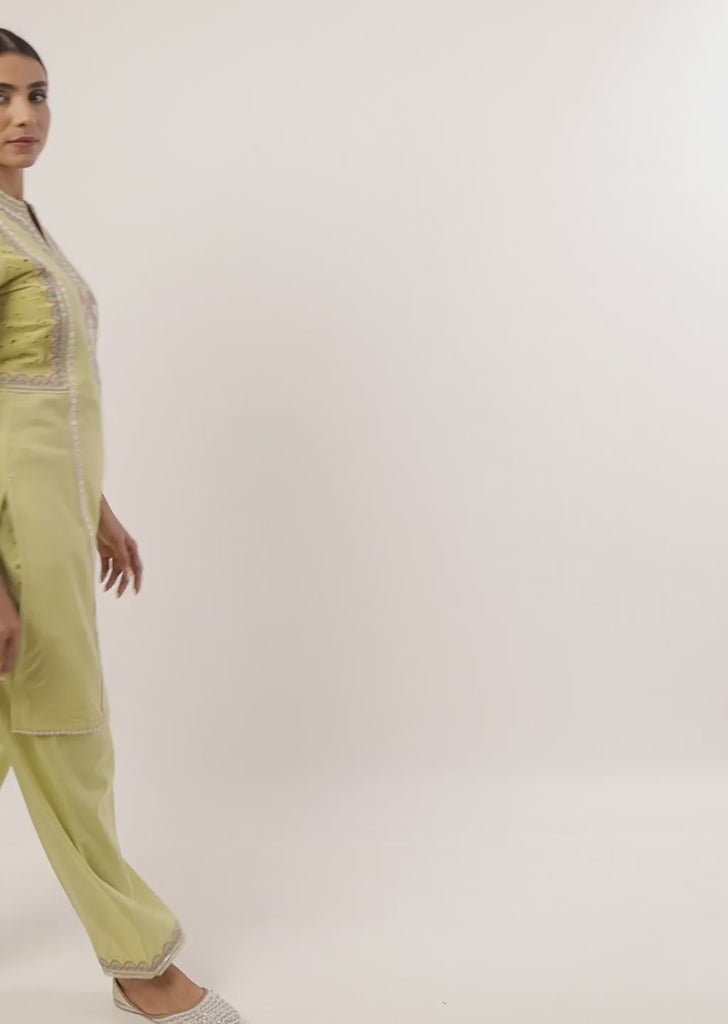 Light Green Schiffili Embroidered Cotton Co-ord Set
