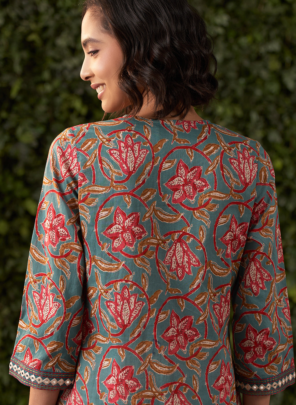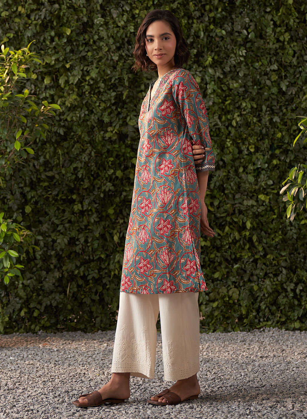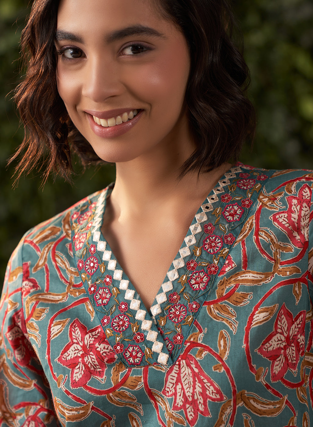 Zaina Emerald Green Printed Cotton Kurta for Women